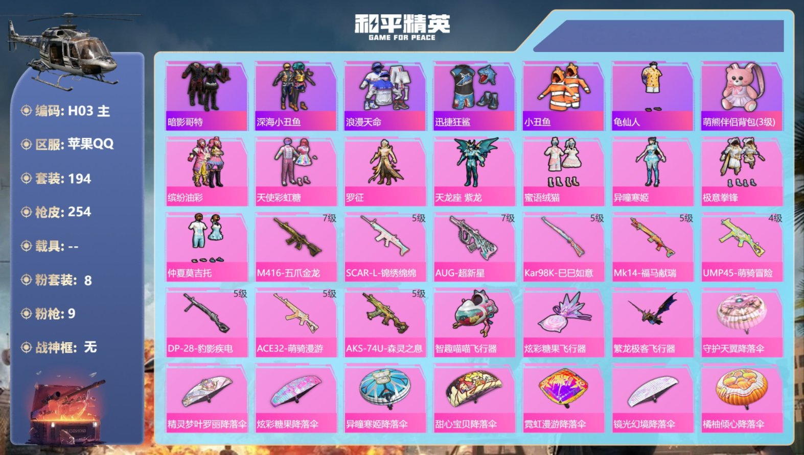 0载具-194套装-254枪皮-2稀有8粉装9特效枪16热门194套装254枪皮