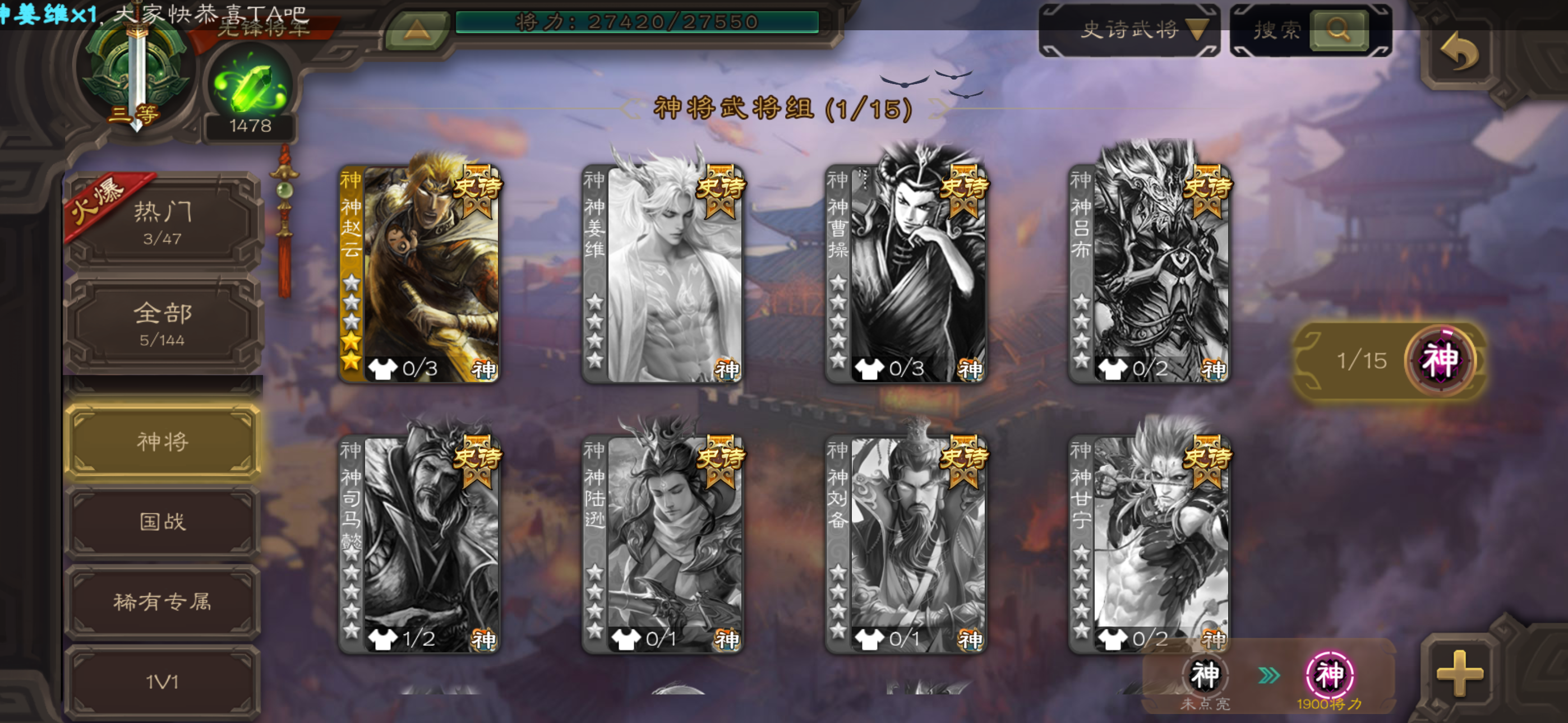 史诗武将数量: