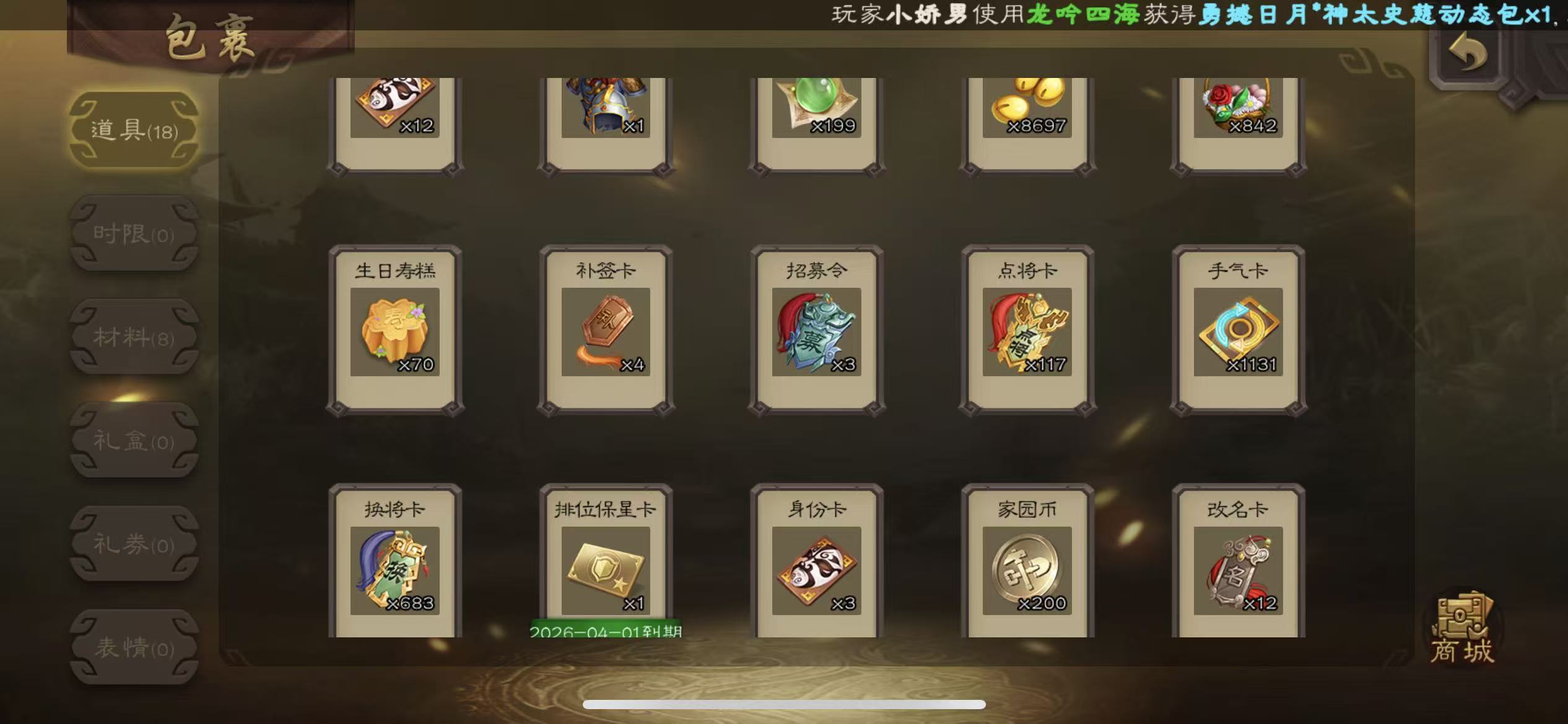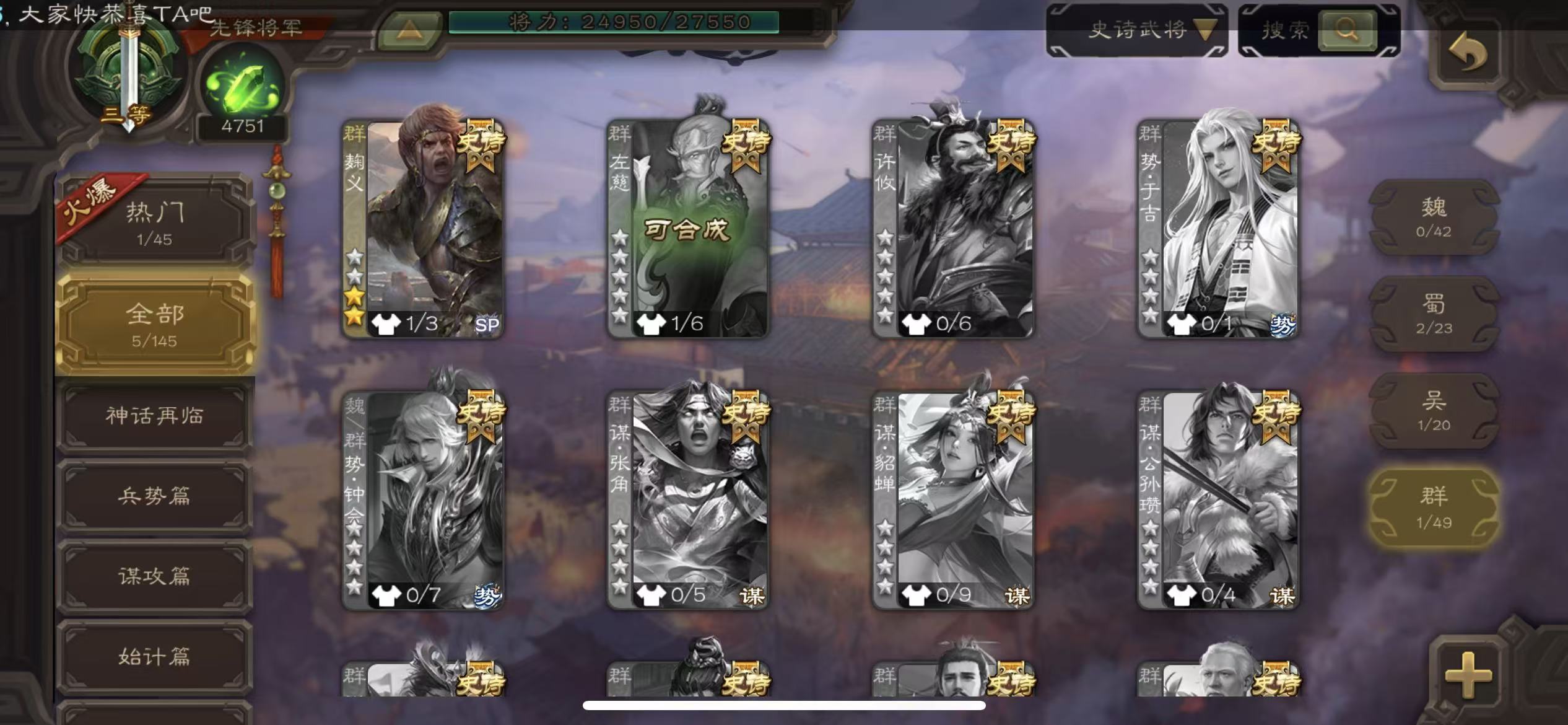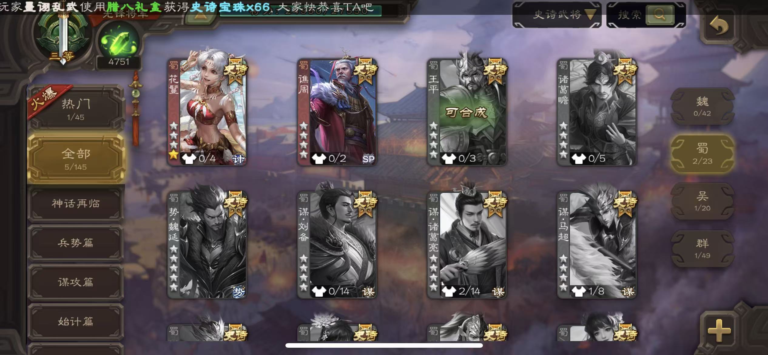 先锋动大宝白马神太史慈6万羽毛4700将魂三卡花花
