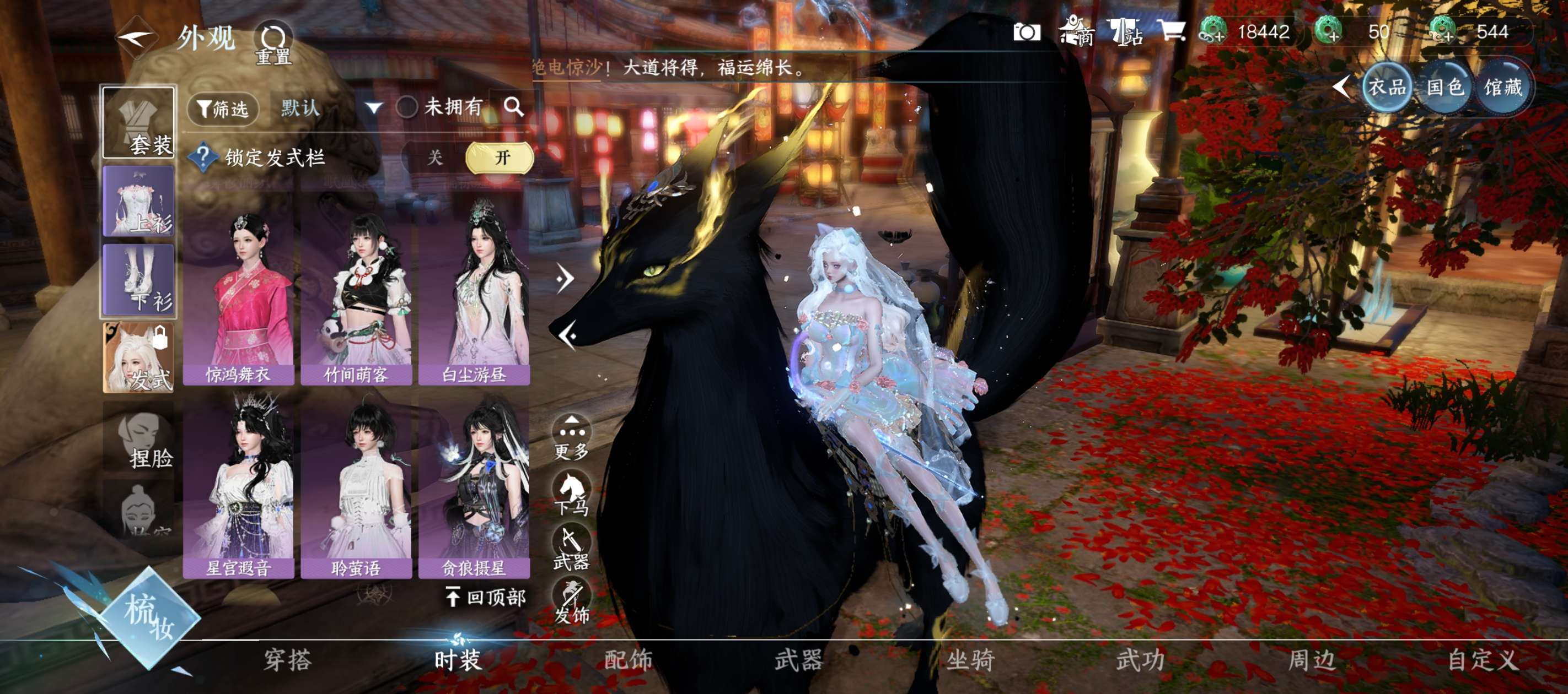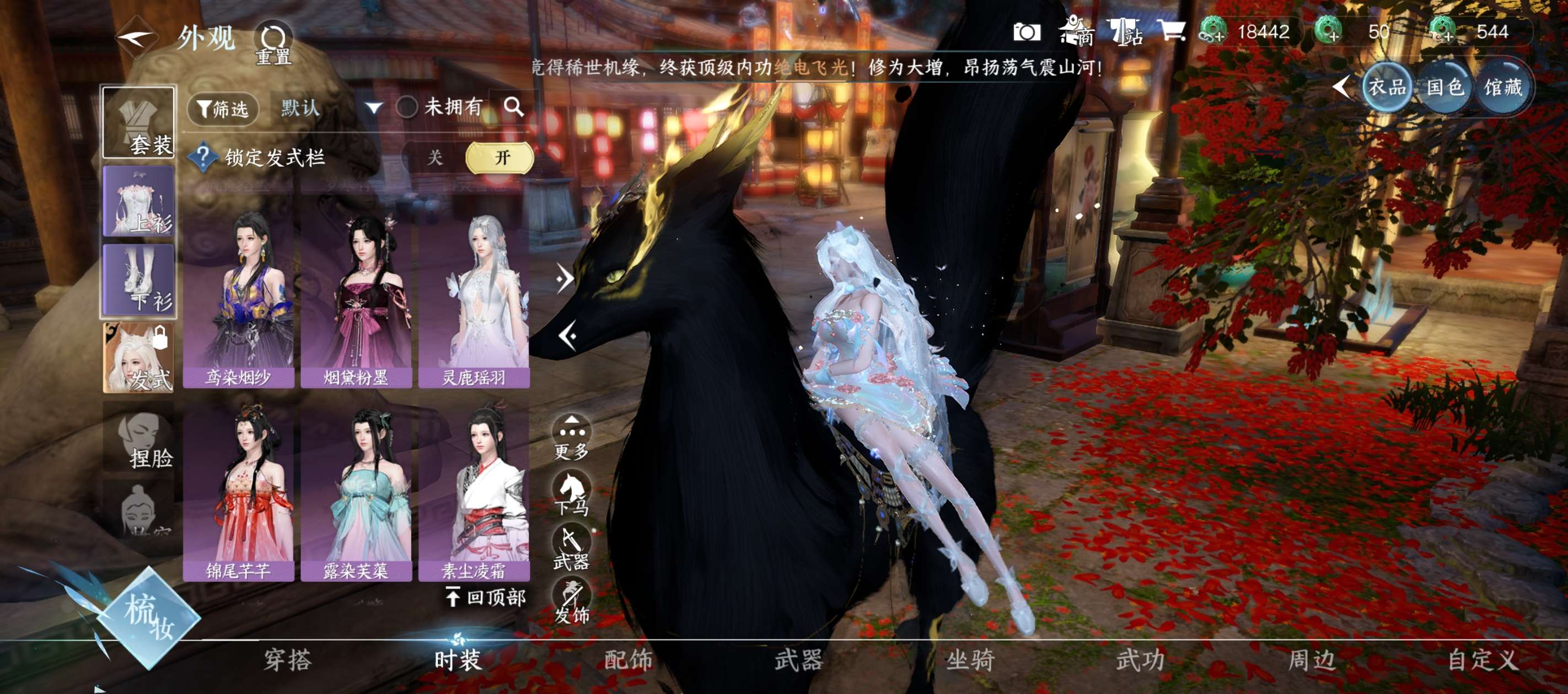 把酒临风,已用天赏9未用天赏1,天赏发型天赏祥瑞天赏武器天赏配饰,5级馆藏200多套时装商城时装多