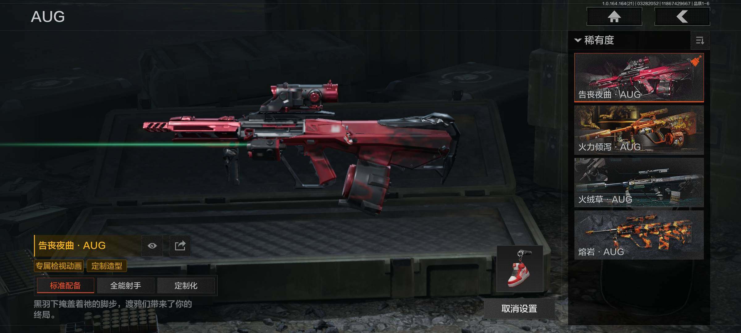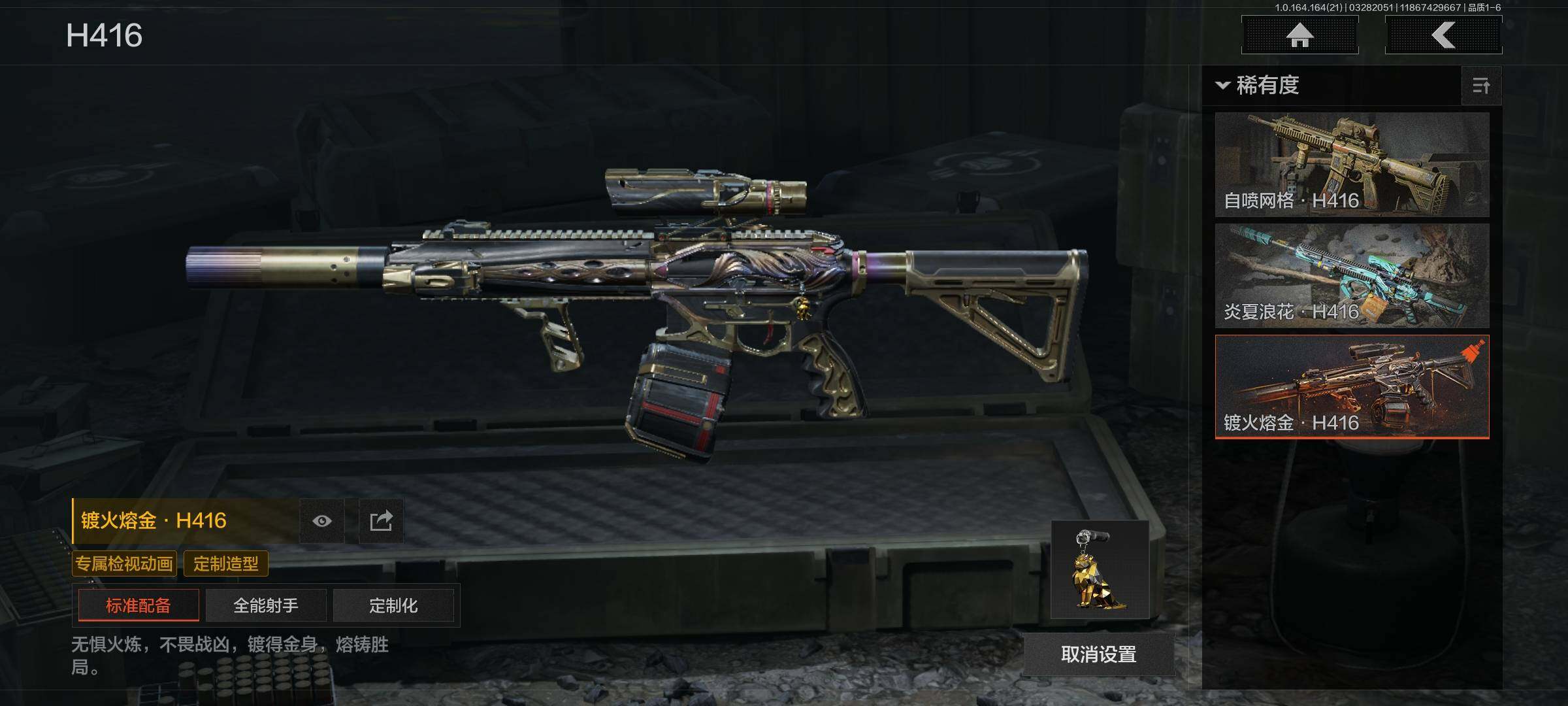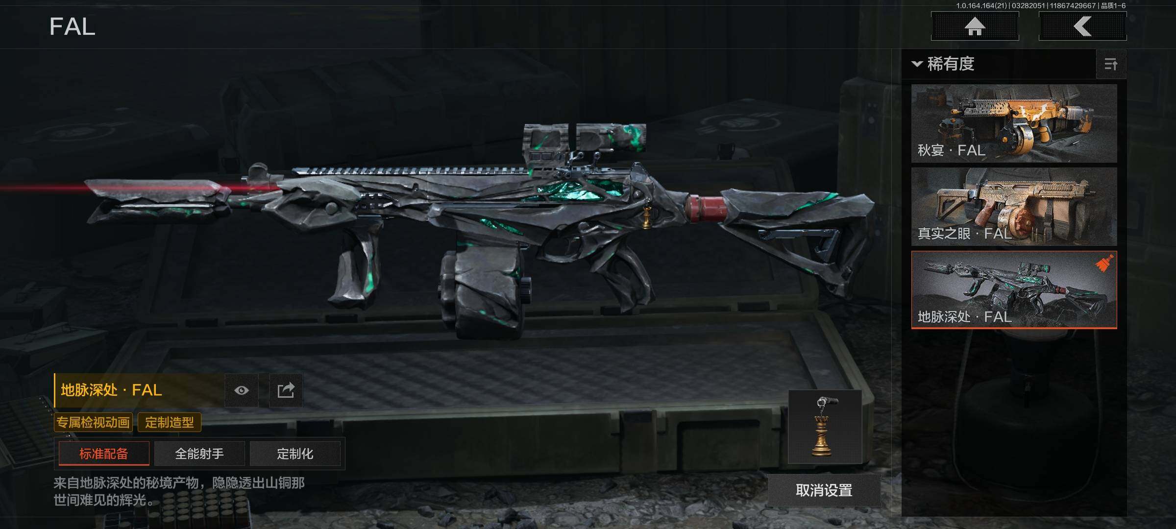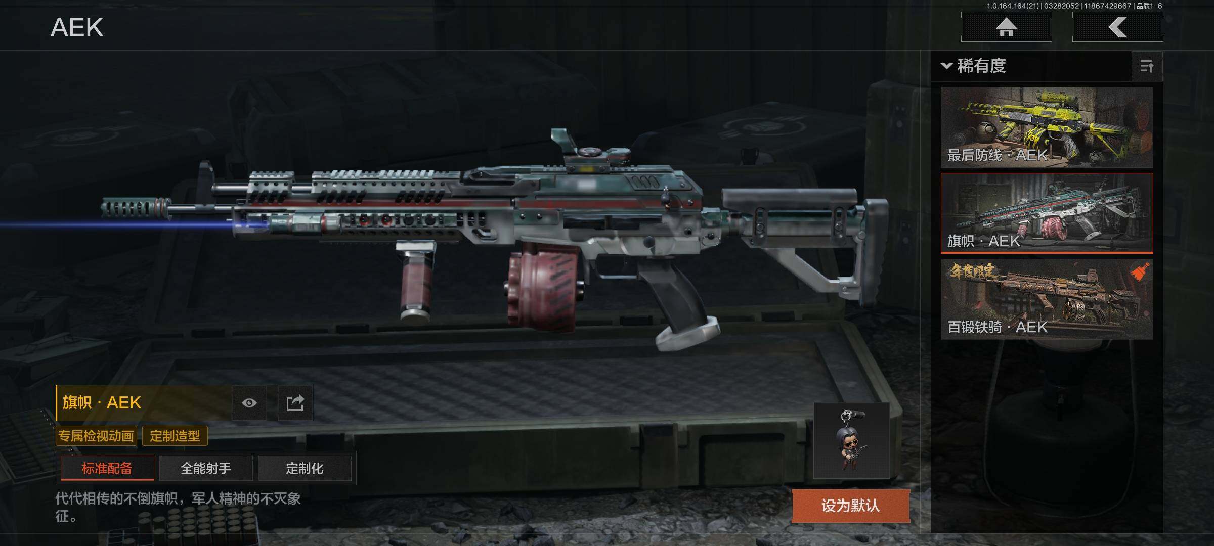 【金色枪皮】:包络战术AKM,地脉深处FAL,旧王圣谕·QBZ191,旧王圣谕·VSS,伦琴幻影·AX50,近卫荣誉·RPK16,干炼铁阵·MK14,利齿风暴·MPX,骑士之剑·VSS,棱光裂变·QBU191,告丧夜曲·
