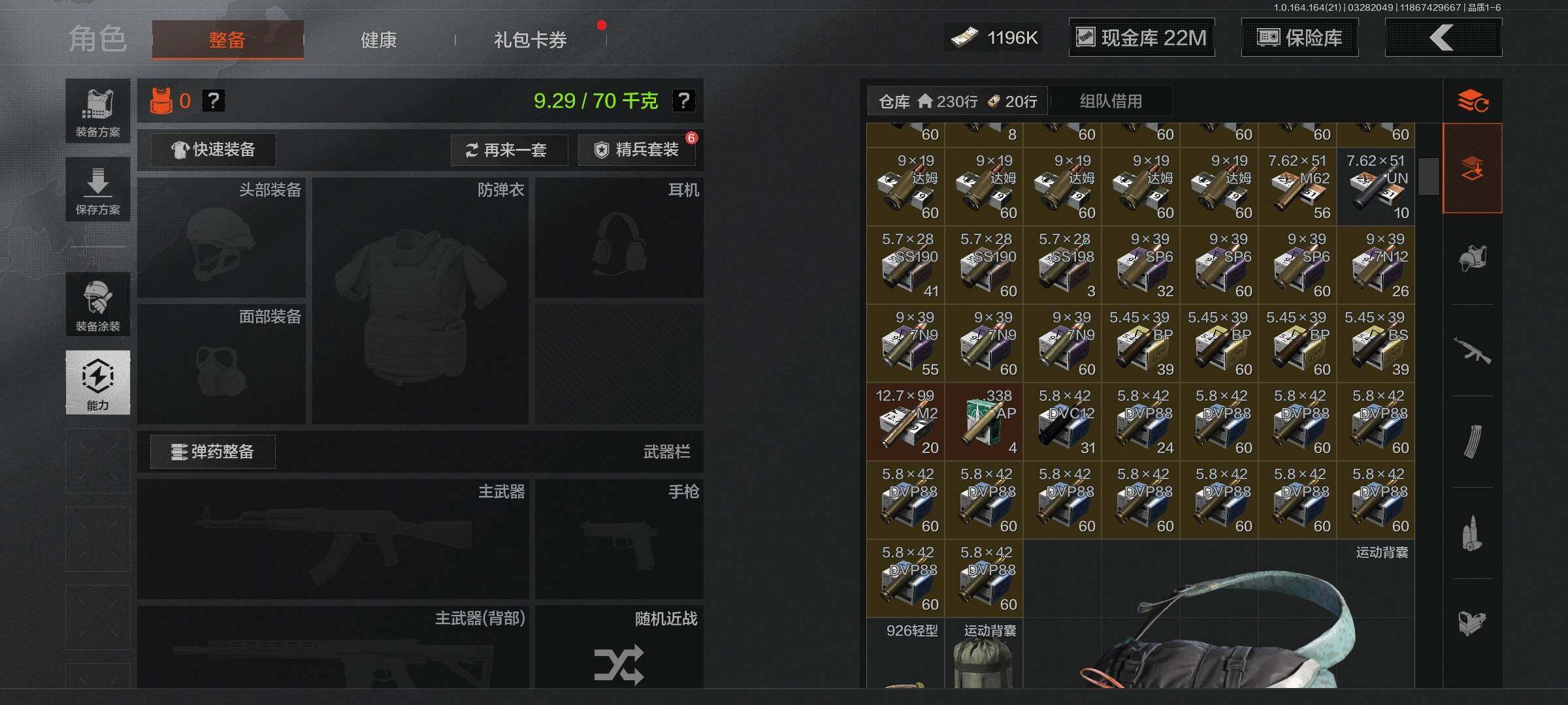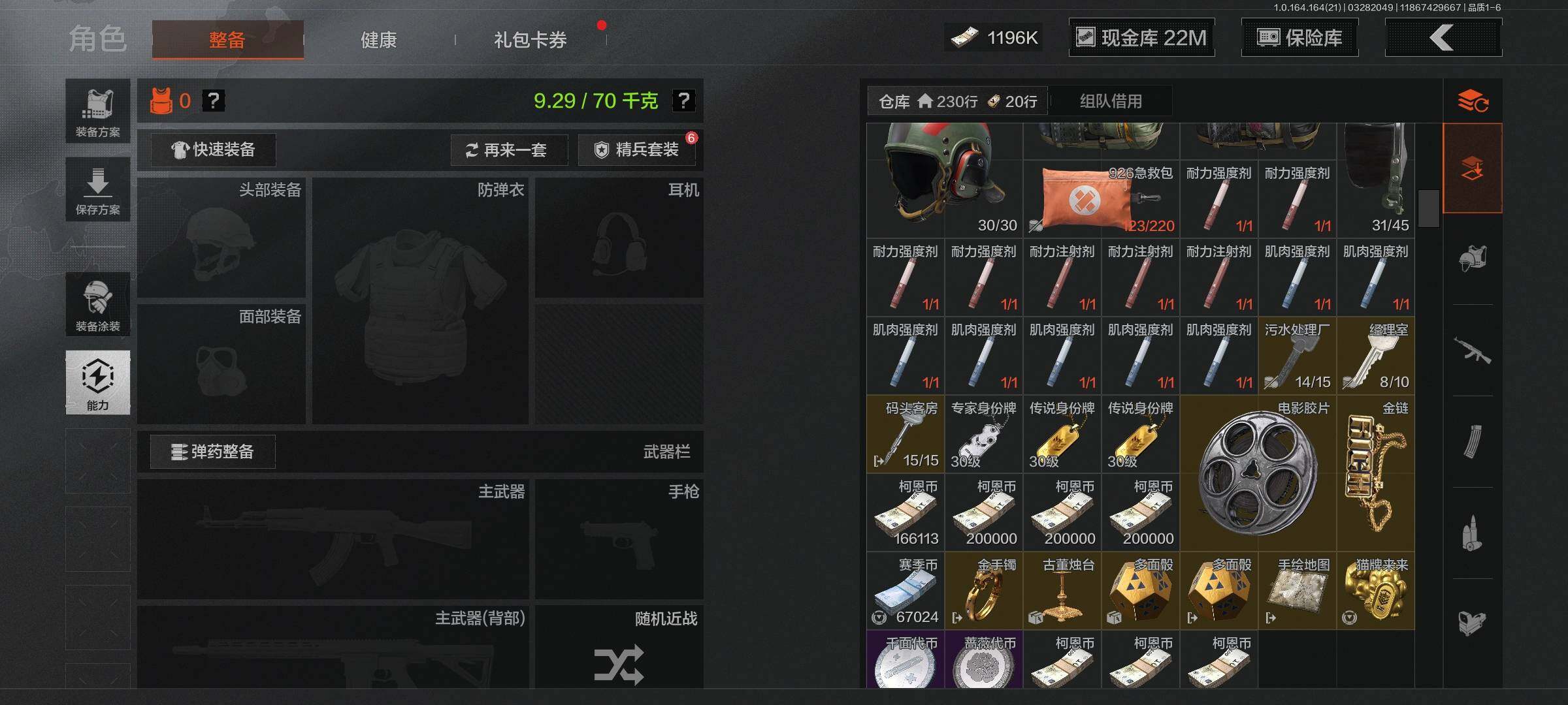 两把手感不错的刀皮,一套金衣服,14把金枪皮,仓库价值41M,柯恩币22M,到