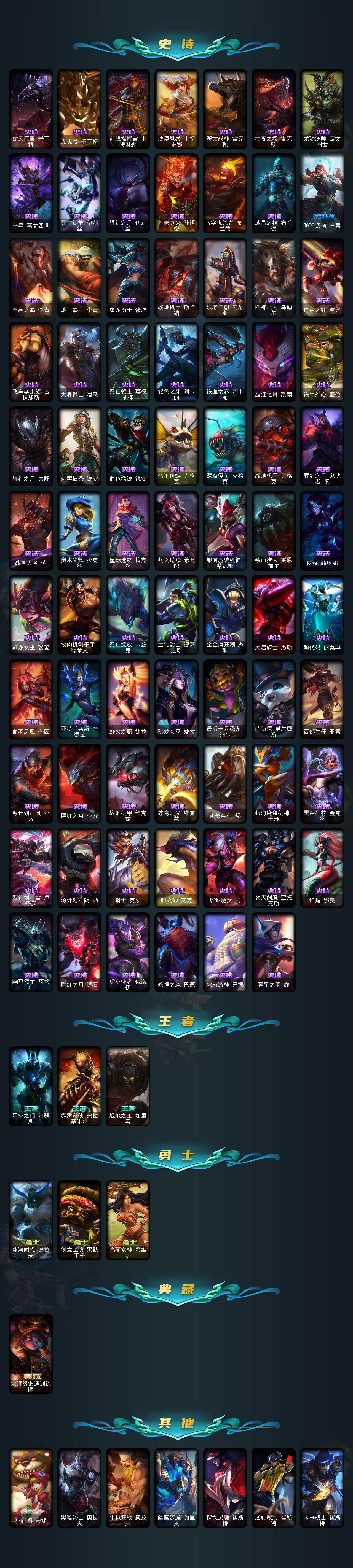 【mlm3】黄金段位-172英雄-522皮肤-260炫彩-1终极-18神话-60限定-36传说-118史诗