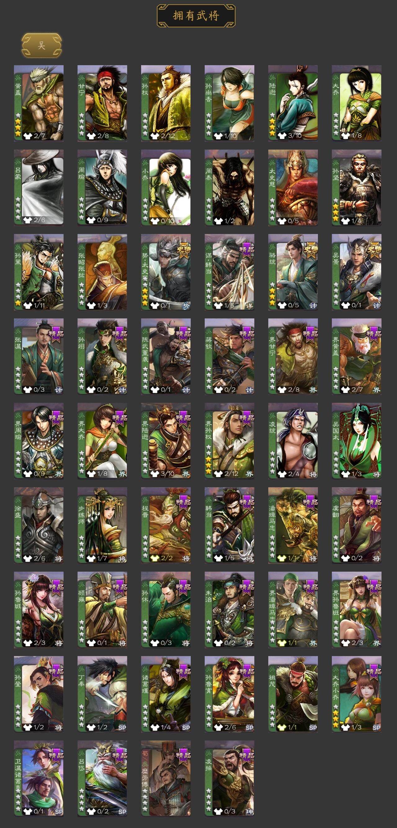 神赵云,神司马懿,神陆逊,界钟会,界于禁,曹婴,曹纯,程昱,谋诸葛亮,傅佥,董允,吴景,骆统,势太史慈,张让,兀突骨,神吕蒙,势夏侯尚,SP关羽,SP曹仁,SP蔡文姬,乐进,曹昂,诸葛诞