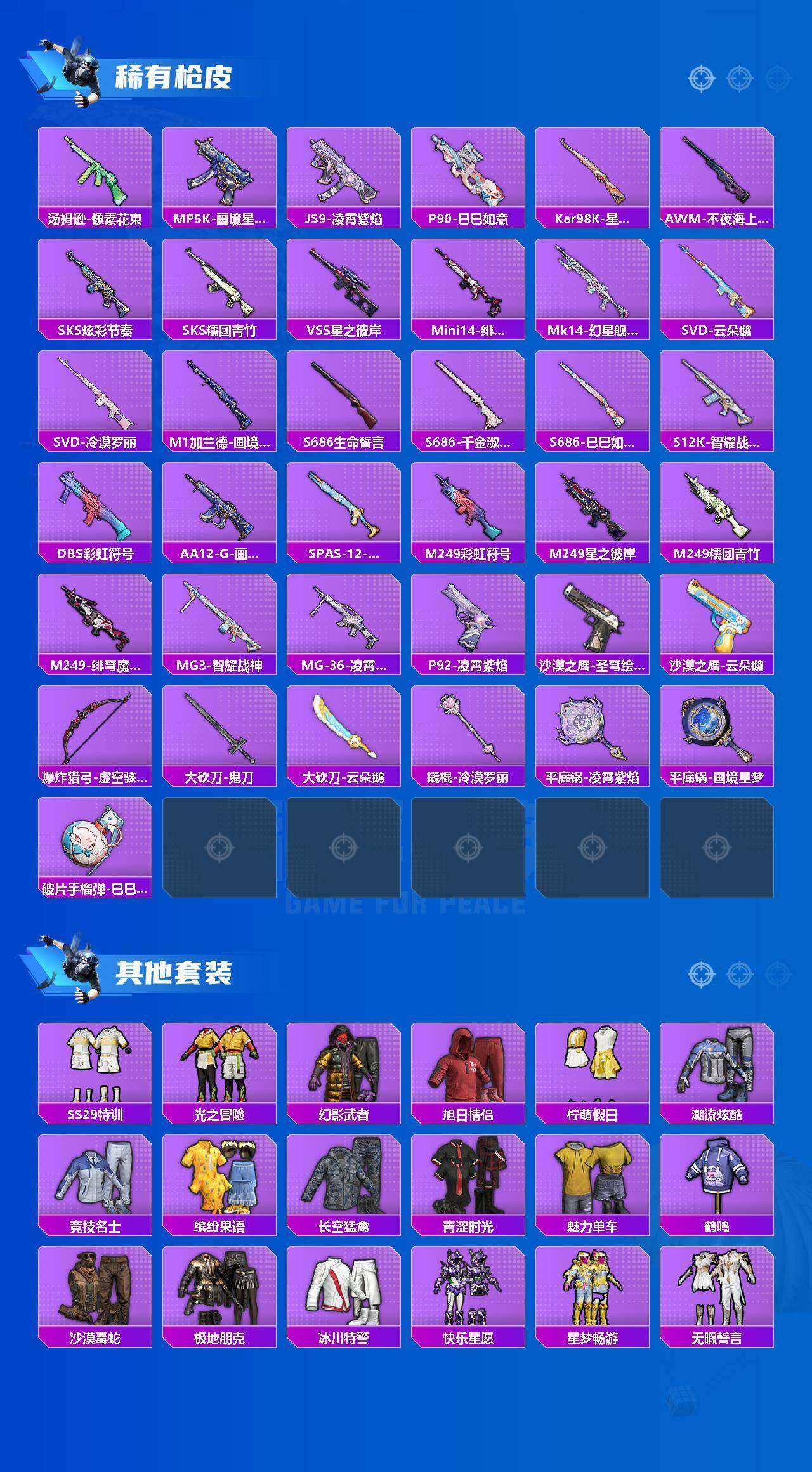 (4粉套8粉枪1载具)星之彼岸/智耀战神/百变魔方/冷漠罗丽/AUG星之彼岸六级/M762青锋波束五级/UMP45萌骑冒险一级/P90魔童闹海敖丙三级/98K巳巳如意五级/Mk14福马献瑞四级/MK12雪月幻音七级/DP28豹影疾电五级/宝马曼岛绿/没战神框/HP6998-5粉色飞行器-42789热力值-4王牌印记-73套装-151枪皮