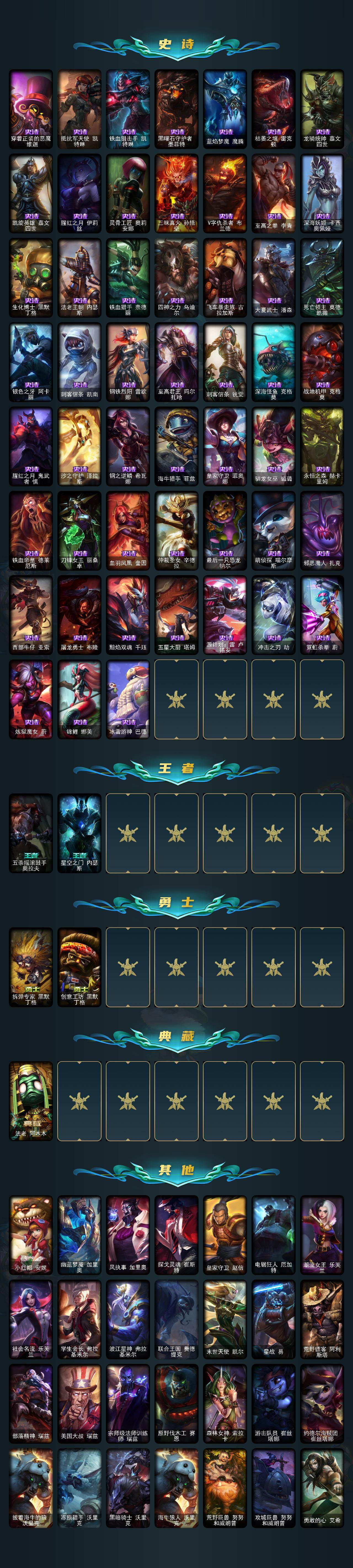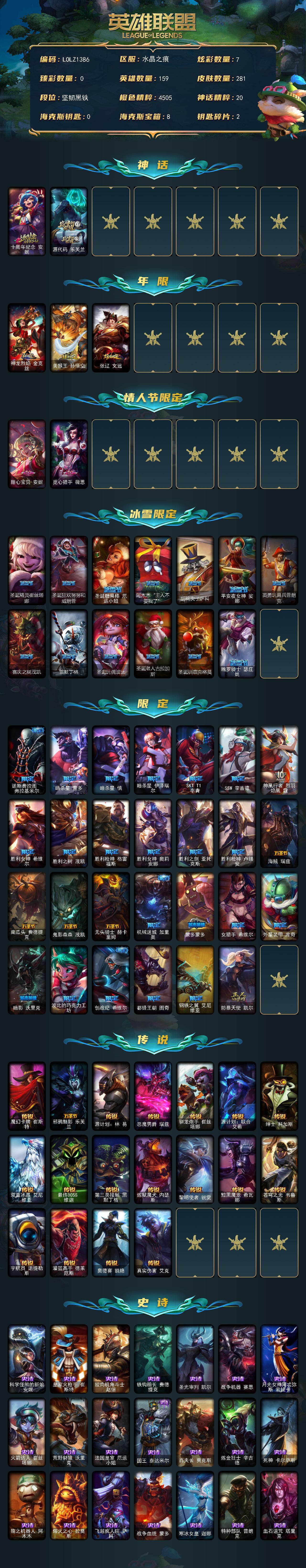 未定级段位-159英雄-281皮肤-7炫彩-0终极-2神话-45限定-18传说-73史诗