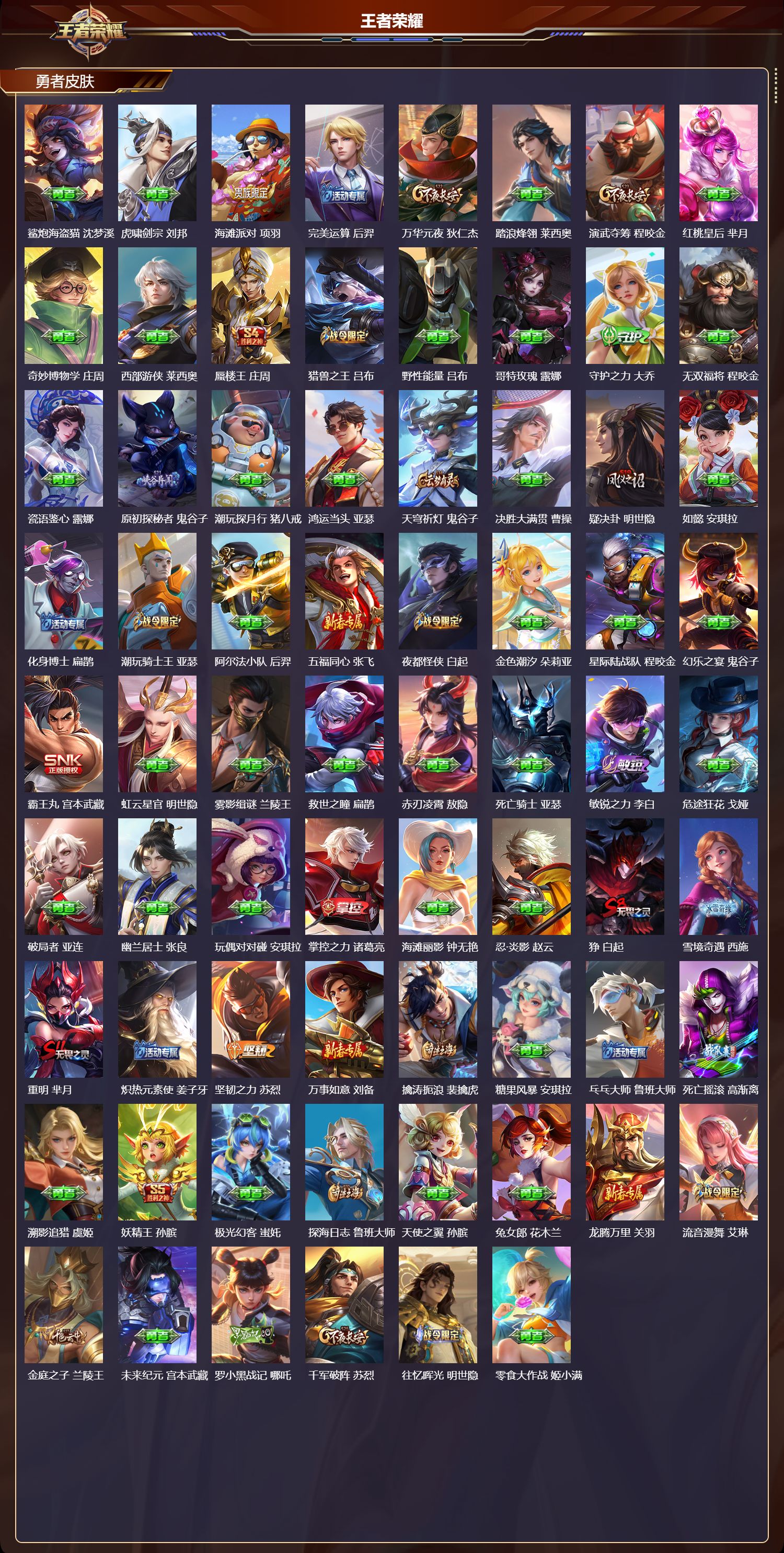 412皮3(有武则天-小兵皮)典藏2无双1珍品传说42传说5星传说