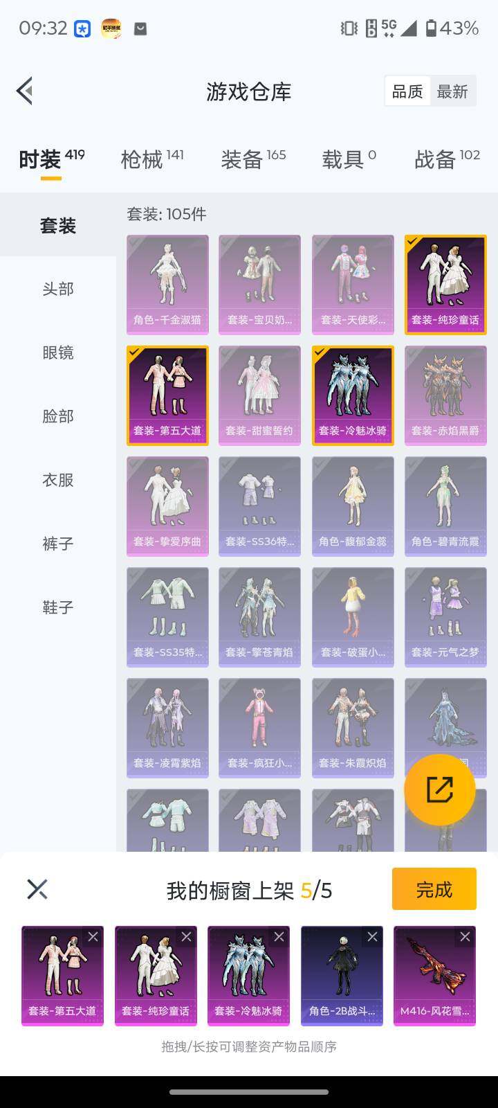 【HP3938】105套装/枪械5/装备165/战备102/王牌印记10/热力值44021/七级M416-风花雪月/一级Kar98K-巳巳如意/五级M417-第五大道/四级DP-28-豹影疾电/三级MG-36-沧焰双生/角色-2B战斗服款/套装-龟仙人/套装-粉红小猪/粉装-宝贝奶油派/粉装-天使彩虹糖/粉装-甜蜜誓约/粉装-冷魅冰骑/粉装-赤焰黑爵/粉装-第五大道/粉装-挚爱序曲/粉装-纯珍童话/角色-千金淑猫/M416-风花雪月/Kar98K-巳巳如意/M417-第五大道/DP-28-豹影疾