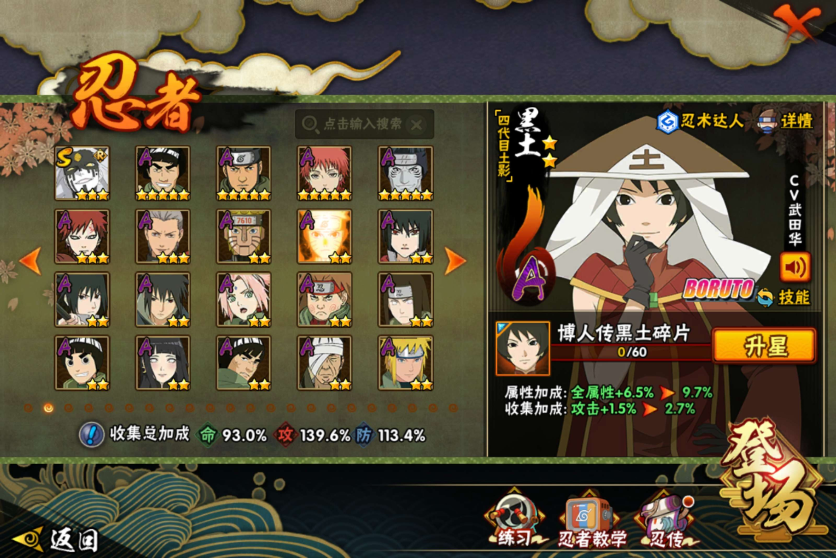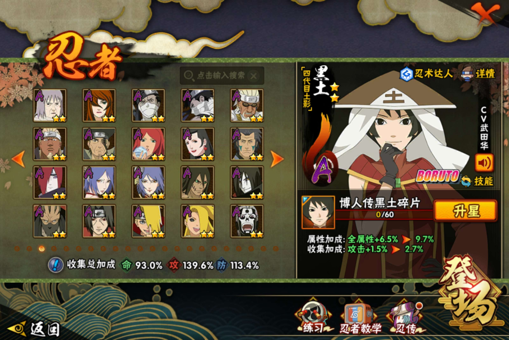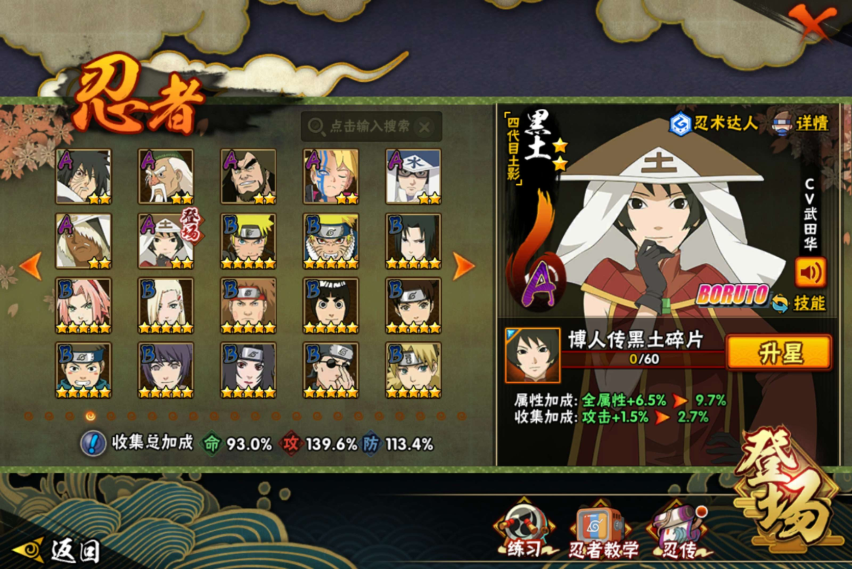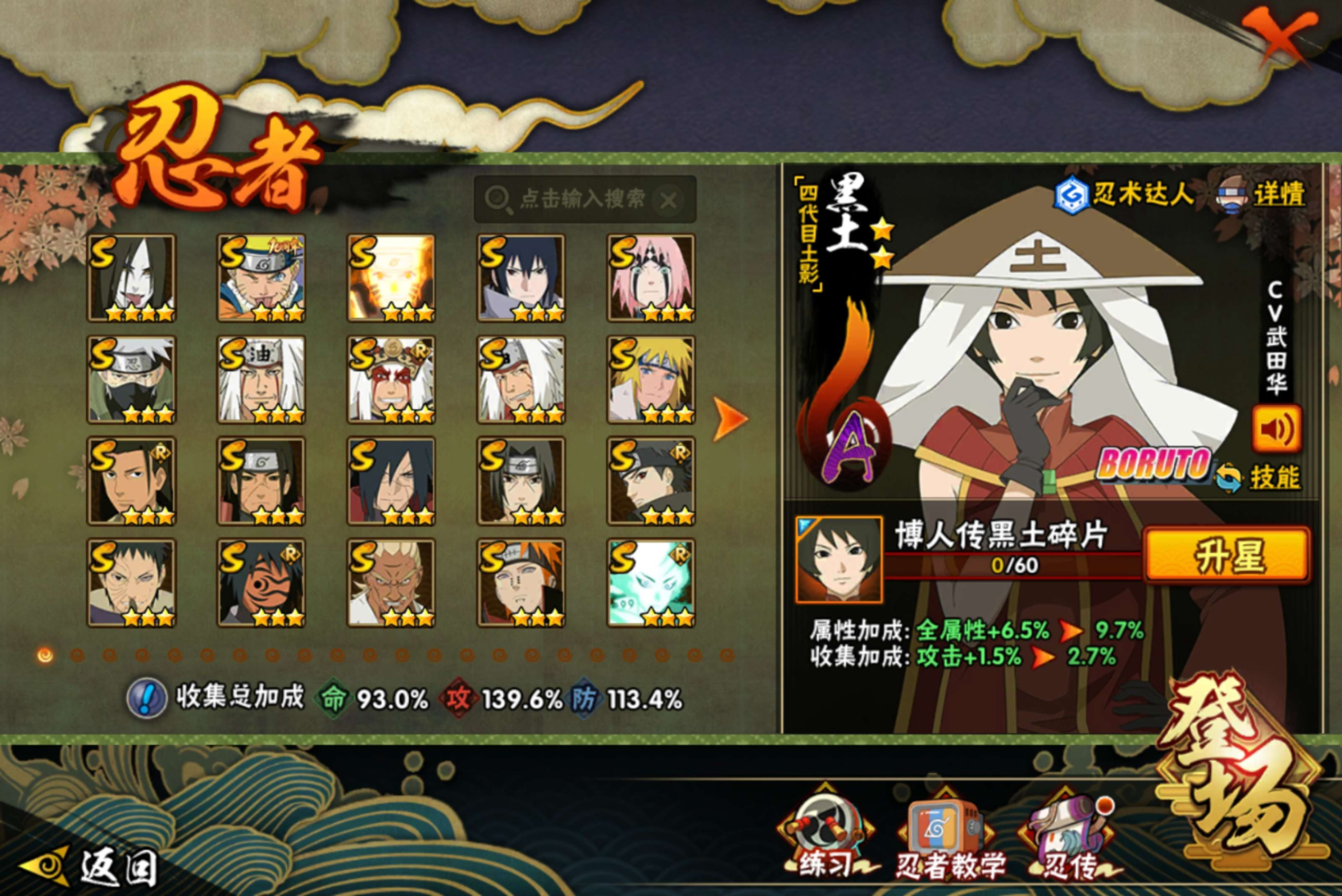 【S级忍者】宇智波带土「忍界大战」(3星),旗木卡卡西「须佐能乎」(3星),自来也「传说中的三忍」(3星),大