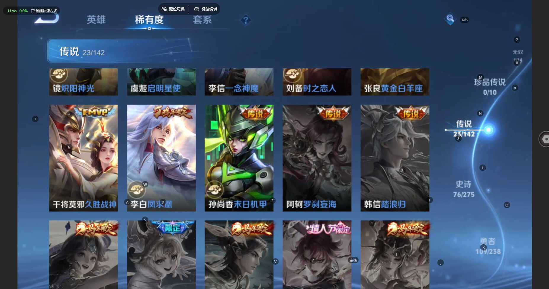 苹果Q-V8-最强王者段位-128英雄-229皮肤-2典藏皮肤-1无双-23传