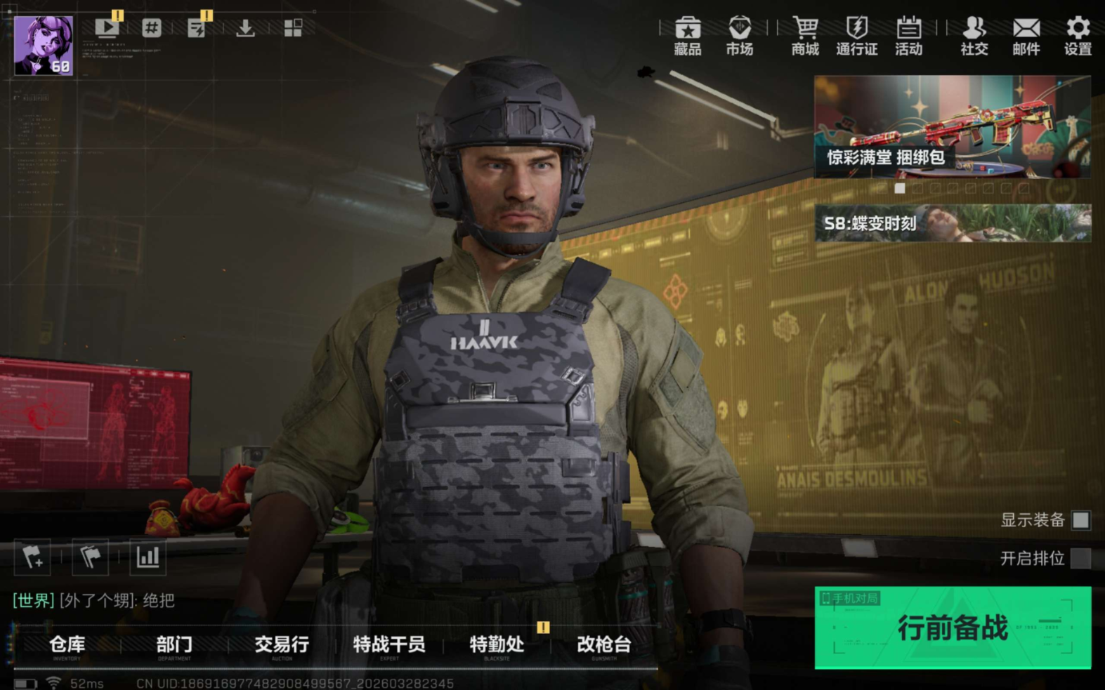 安卓qq/60级成品号/红皮资产猛攻号/训练中心靶场满级/总资产156.05M,哈夫币 24102.59K,战场等级:1 列兵,行动等级:60 青铜,角色皮肤1,枪皮数量56