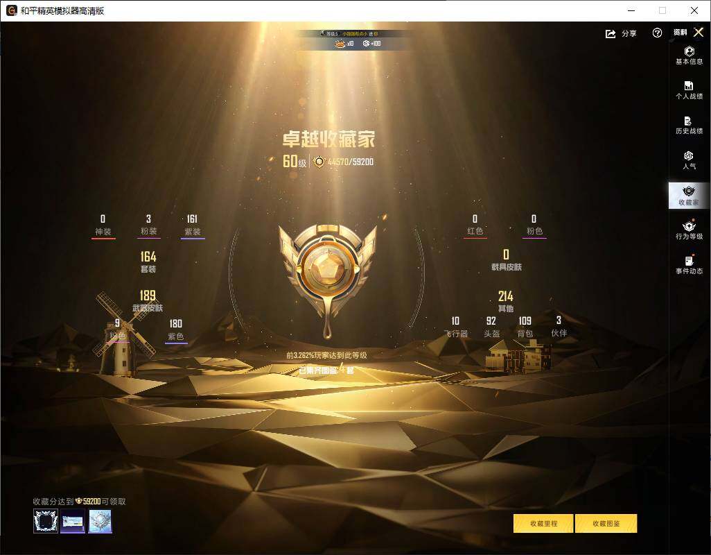 安卓 手Q-3粉装-9特效枪-0载具-1粉色飞行器-62652热力值-17王牌印记-164套装-207枪皮
