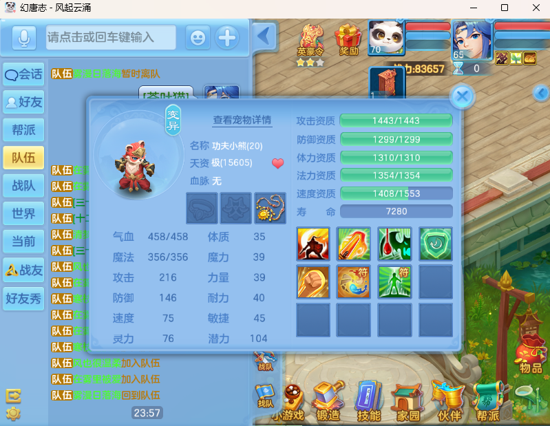 风起云涌,男普陀53万银子,5技能功夫熊,6技能苍叶猫