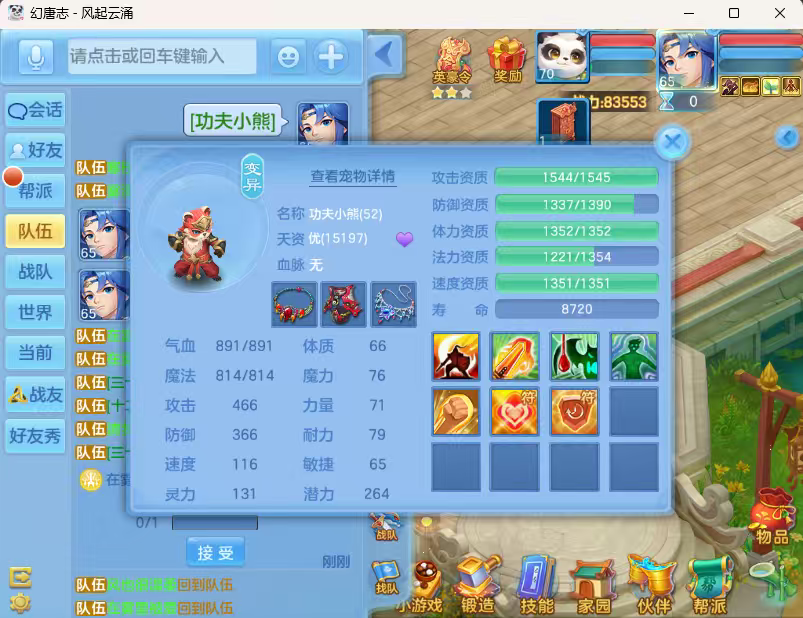 风起云涌,男天宫120万银子,5技能紫心功夫熊