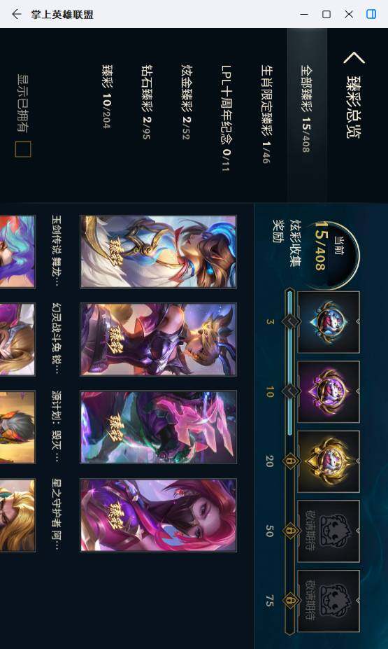 未定级段位-171英雄-175皮肤-19炫彩-0终极-3神话-21限定-18传说-43史诗
