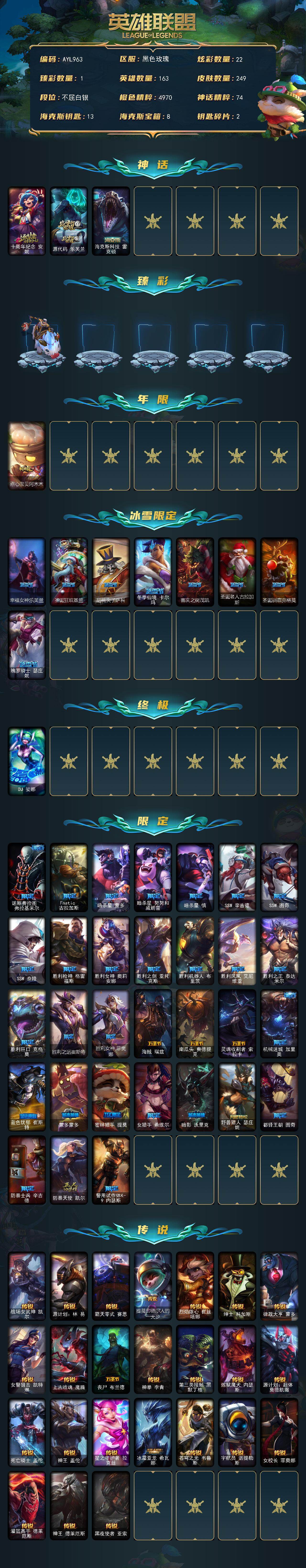 白银段位-163英雄-249皮肤-22炫彩-1终极-3神话
