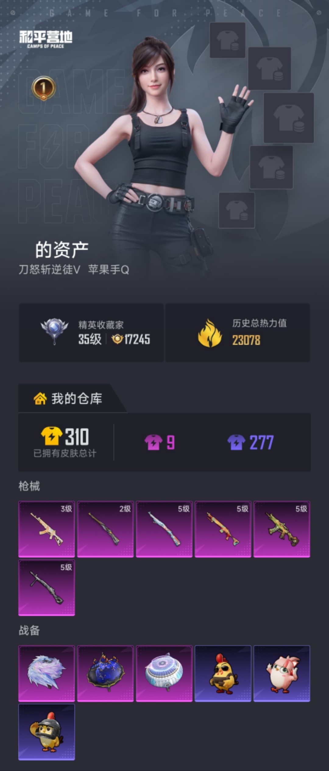 【冰川格斗者6特效枪 秒换绑不用等】 苹果Q区-23078热力值-52套装-101枪皮 【1稀有】 AWM-黄金龙骨【6特效枪】 AKS-74U-森灵之息(5级) Mk14-福马献瑞(5级) ACE32-萌骑漫游(3级) Kar98K-创世·救赎(2级) Kar98K-巳巳如意(5级) DP-28-豹影疾电(5级)【99热门】 冰川格斗者 M762-天降萌叽 UMP45-蓝色火焰 MG3-幻世战舞者 AKM-星之彼岸 M416-蓝色火焰 长空猛禽 黑色伏地魔 海岛探路者 AKM-奇异狩猎者 AA