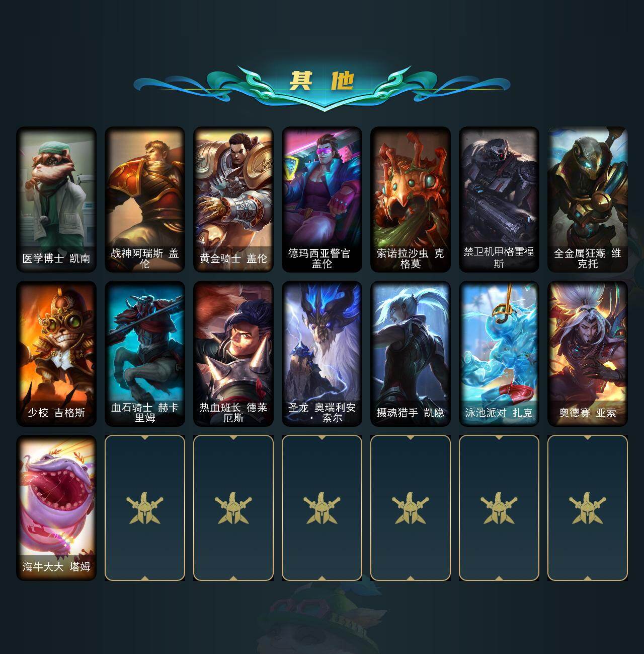 135英雄/95皮肤/1神话/7限定/13传说/21史诗/未定