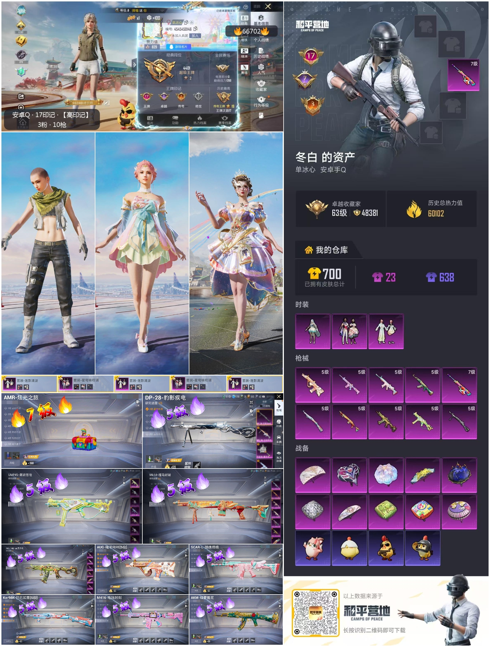 hs66702 安卓手Q-17王牌印记-3粉装-10特效枪-60102热力值-127套装-204枪皮-7卓越印记-3传奇印记
