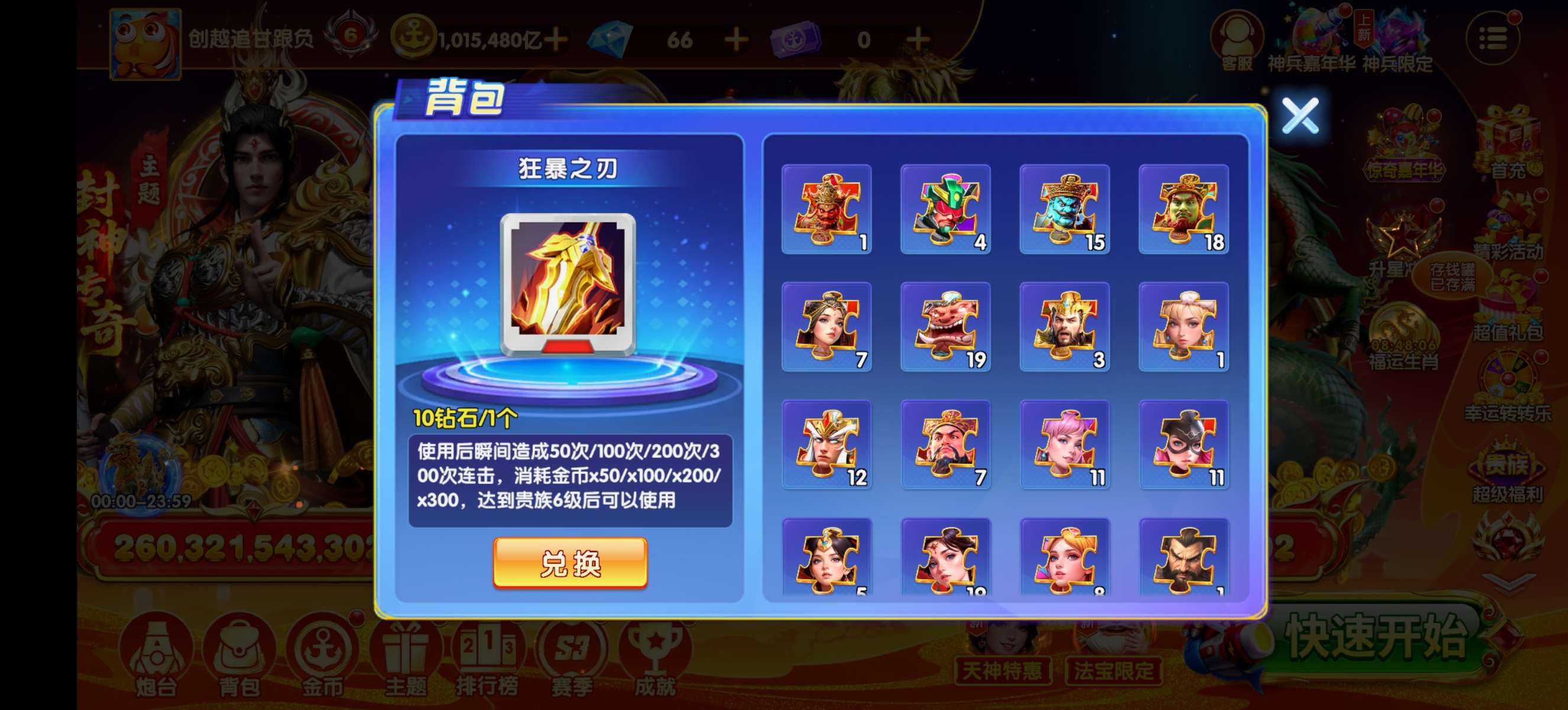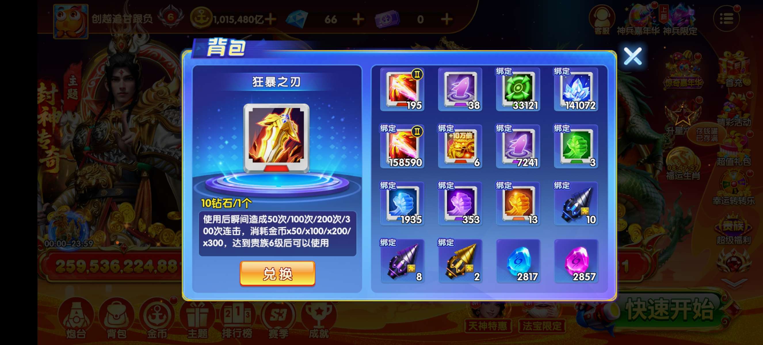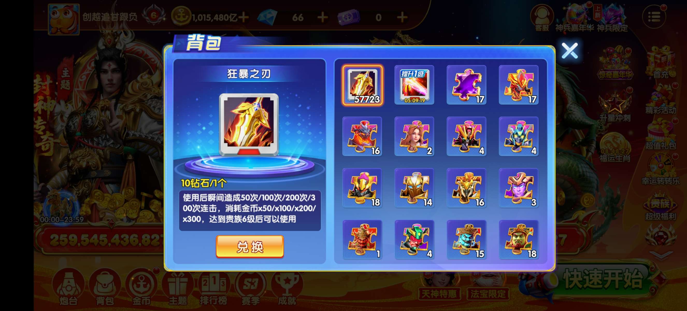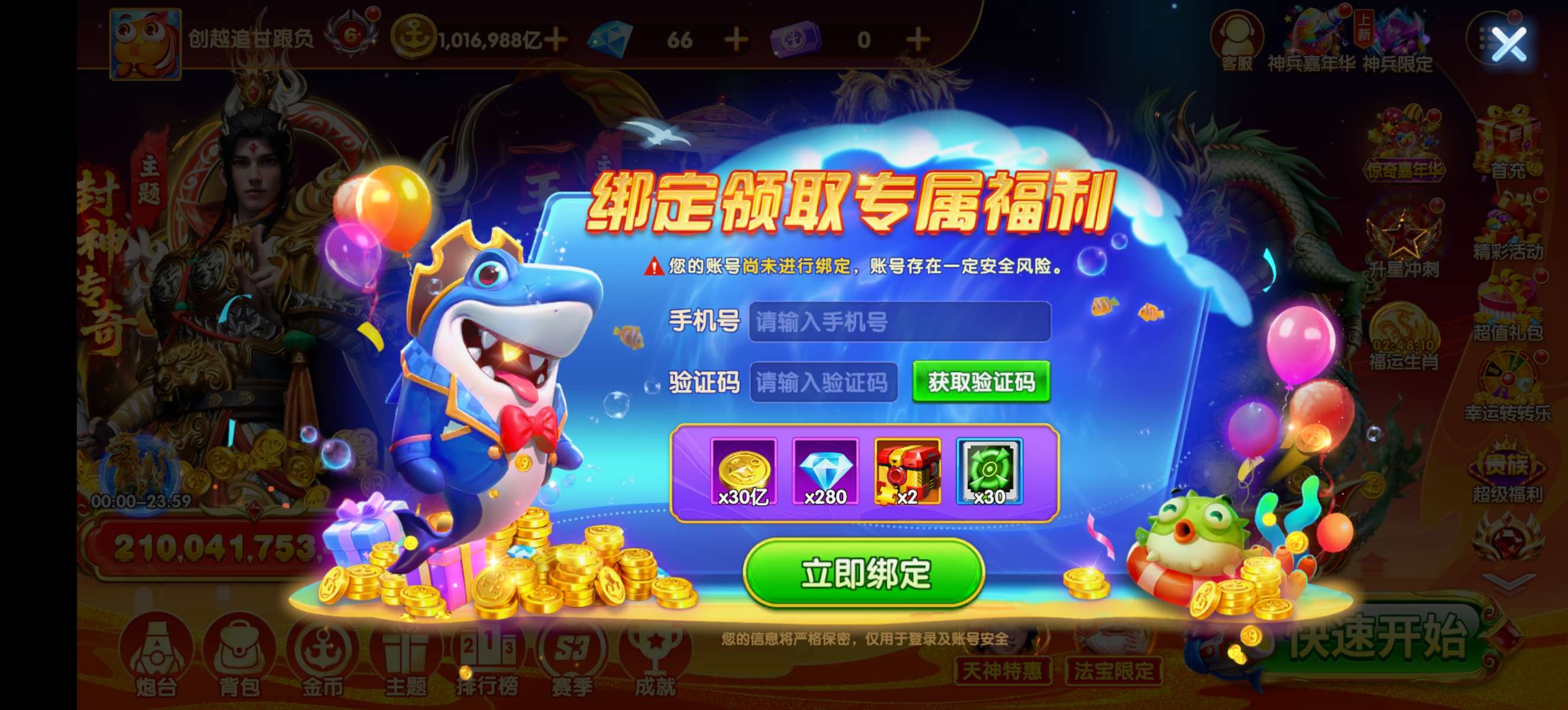 乐乐捕鱼贵族6+100万亿金币+2级万象+10多万蛋蛋5.7万扎子+女神天王羁绊!已解绑带号一起出