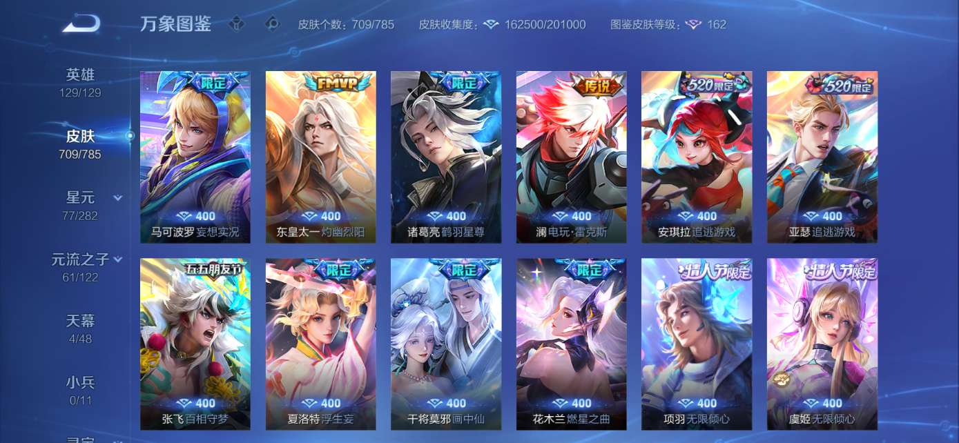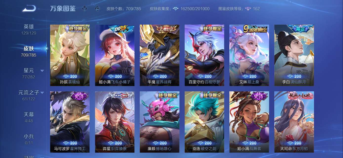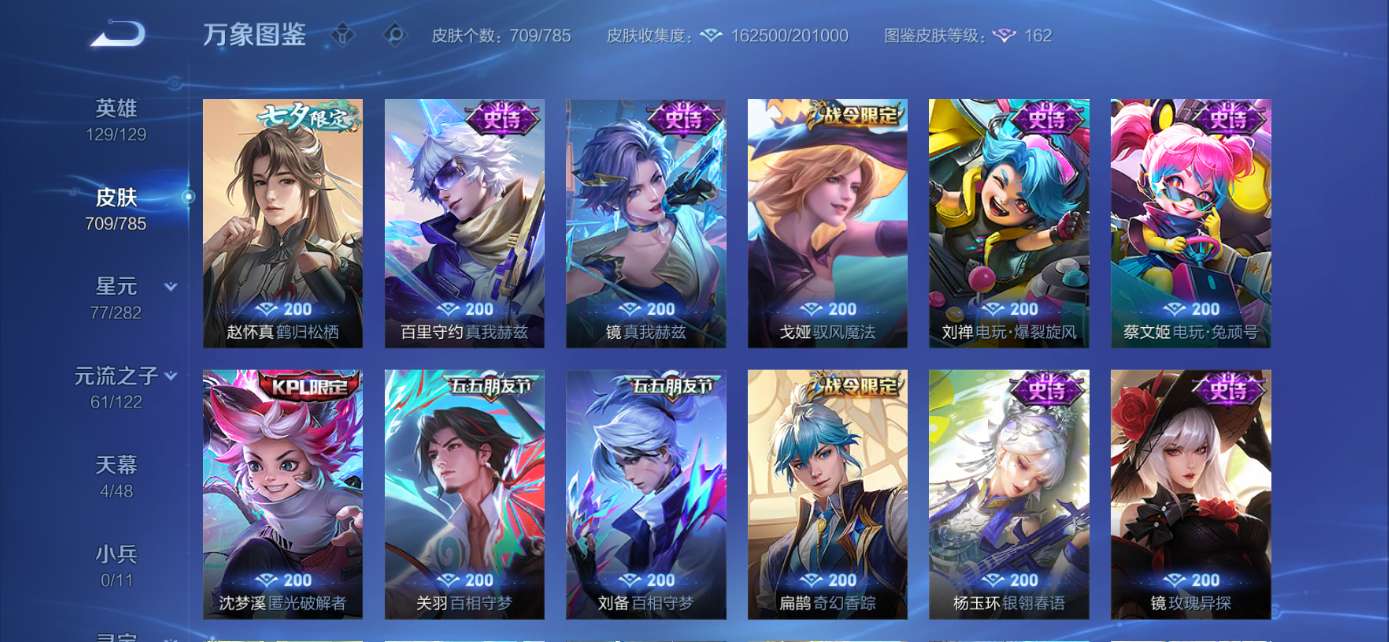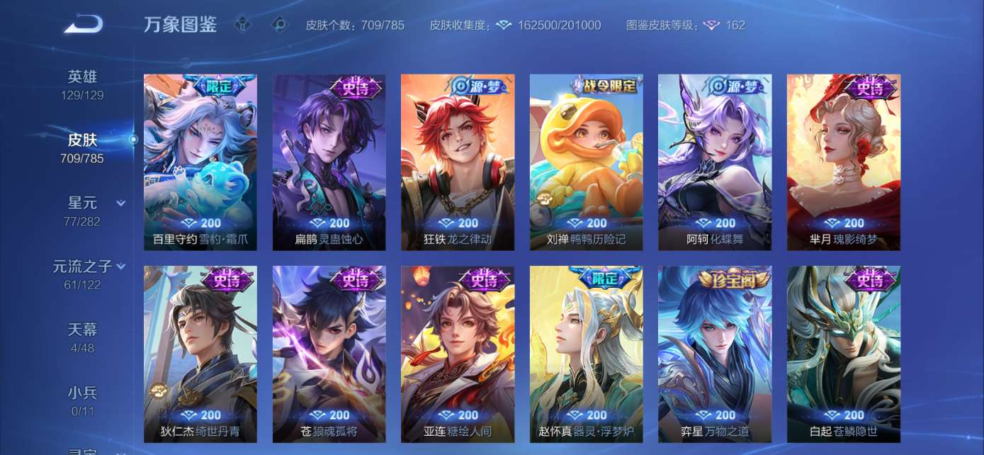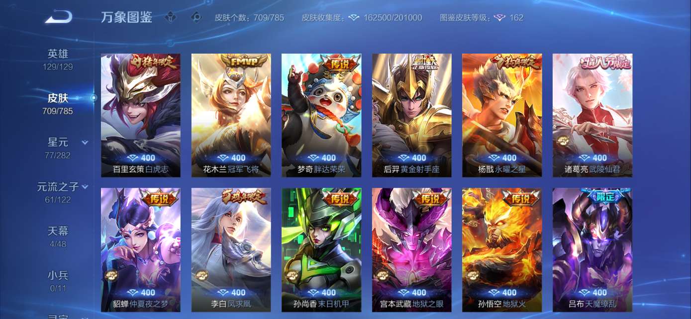 无双贵族 皮肤709 英雄129 荣耀王者 荣耀典藏8 珍品无双1 无双皮肤13 珍品传说7 传说1