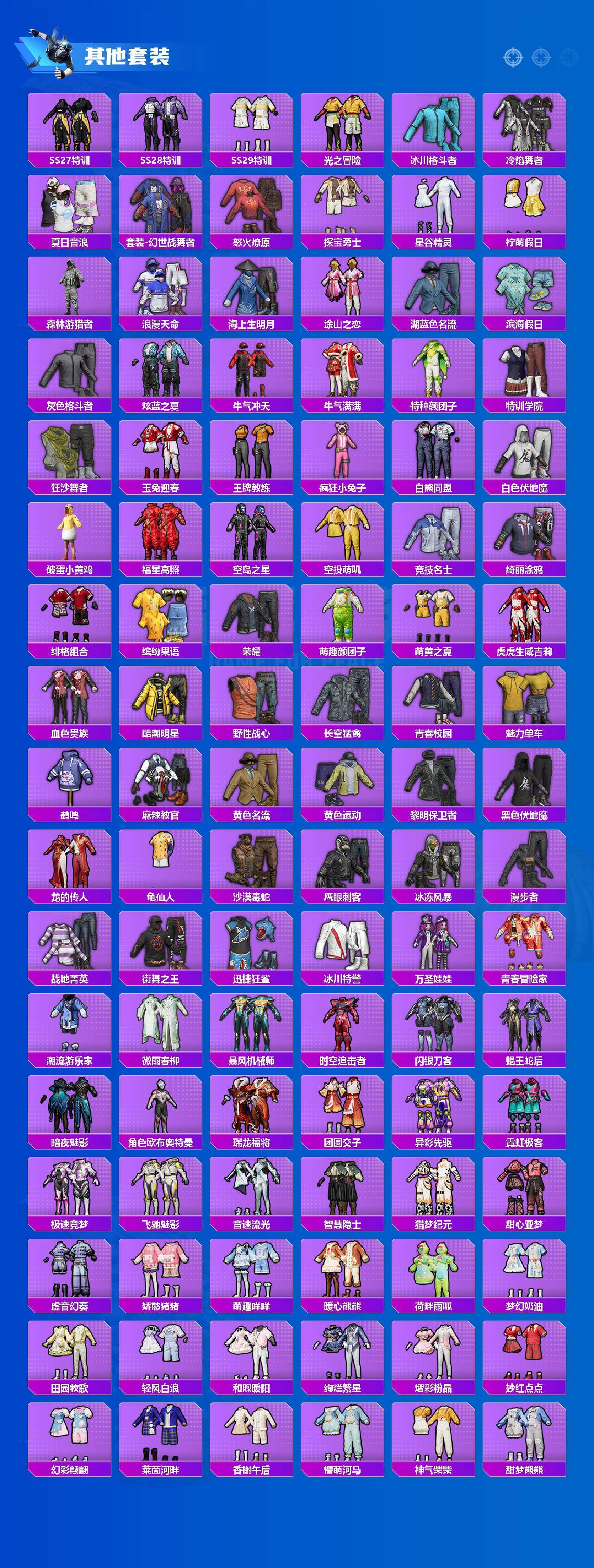 【粉色套装】:粉装-蝶舞迷情,粉装-彩虹鹿灵,角色-洛天依,粉装-俏雪含霜,粉装-朗月武圣,粉装-旋转彩虹,角色-歌者泠鸢,粉装-暗夜鎏金,粉装-纯珍童话,角色-呆萌星弥,角色-圣堂之誓