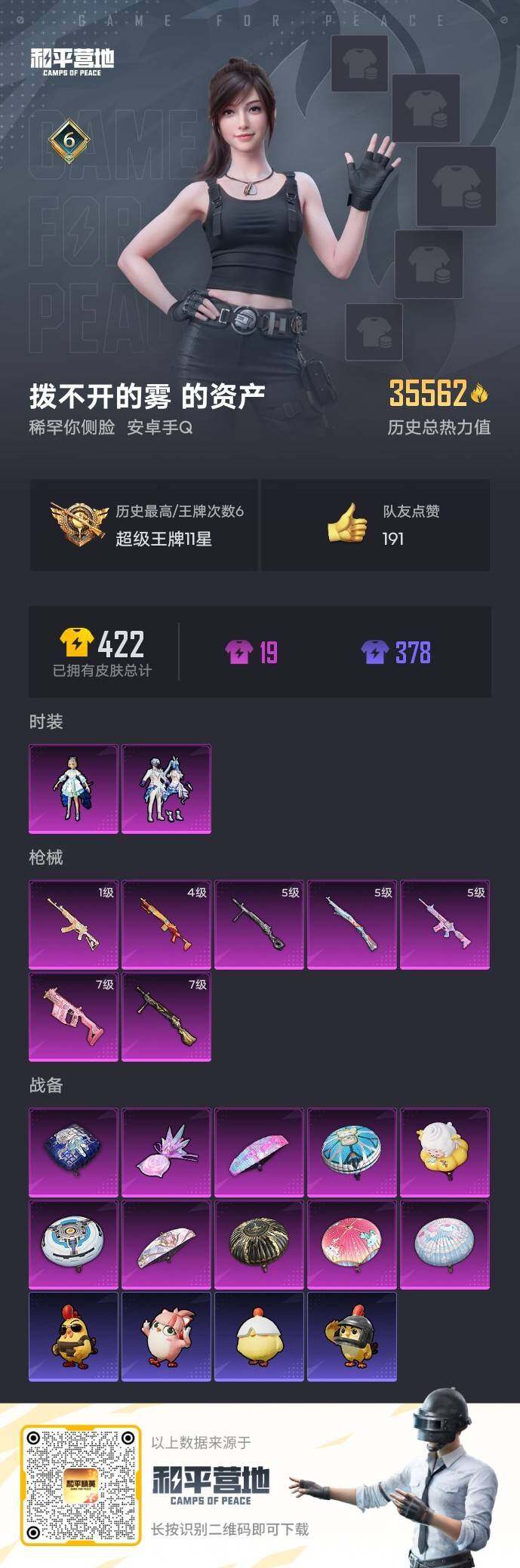 【HP4211】88套装/枪械7/装备134/战备83/王牌印记6/热力值35562/五级M416-电玩时刻/一级ACE32-萌骑漫游/七级Vector-飒粉甜心/五级Kar98K-巳巳如意/四级Mk14-福马献瑞/七级DP-28-暗夜鎏金/五级DP-28-豹影疾电/角色-军刀雅典娜/套装-龟仙人/角色-洛天依/粉装-未来歌姬/M416-电玩时刻/ACE32-萌骑漫游/Vector-飒粉甜心/Kar98K-巳巳如意/Mk14-福马献瑞/DP-28-暗夜鎏金/DP-28-豹影疾电/炫彩糖果飞行器/