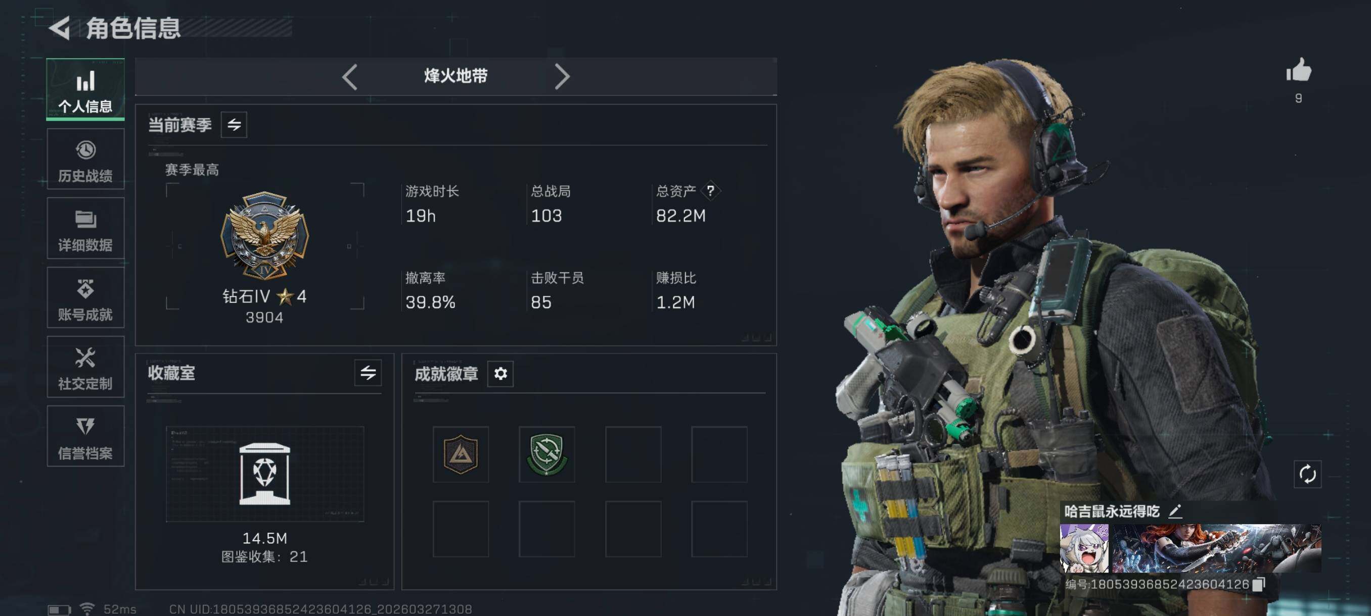 {特价出售}等级:60总资产:82.2M 纯币6289k 红皮:露娜联动 刀皮: 信条 砖皮: 棱镜攻势S2优品A M7 特勤处:仓库7,训练6,靶场4