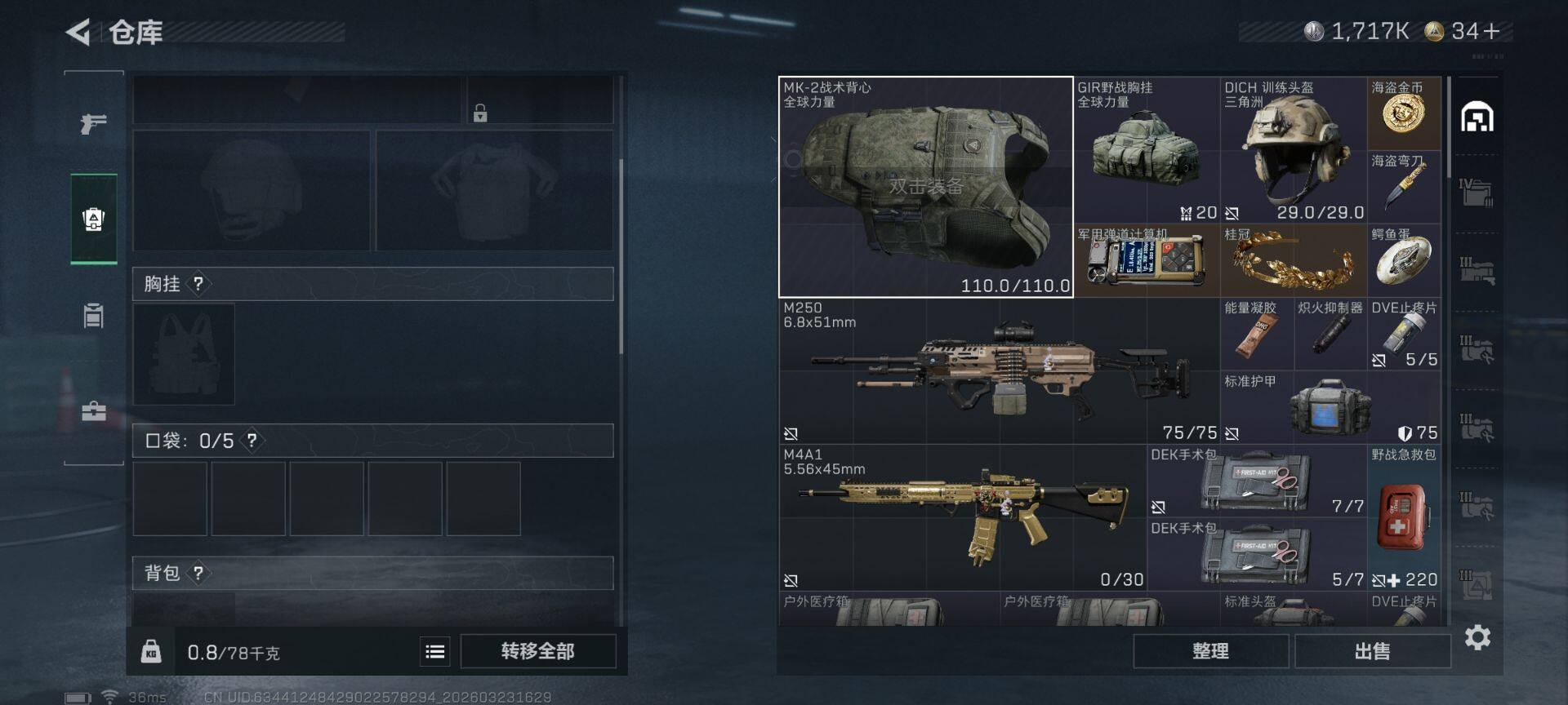 总资产(M):67M/哈夫币(K):1717K/