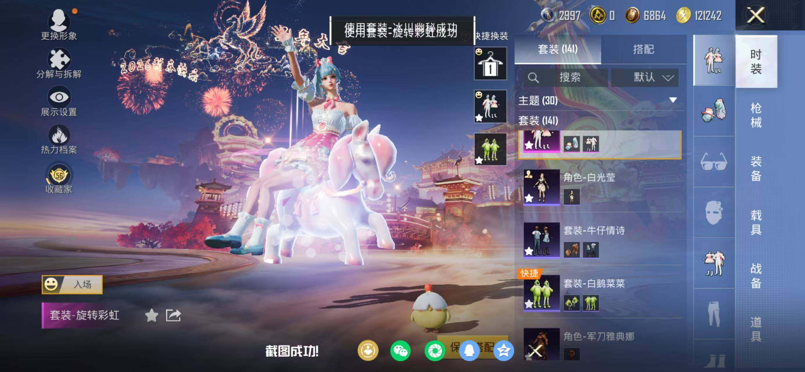 【粉色套装】:粉装-旋转彩虹,粉装-冰川幽秘,粉装-天星战神,套装-创世·救赎