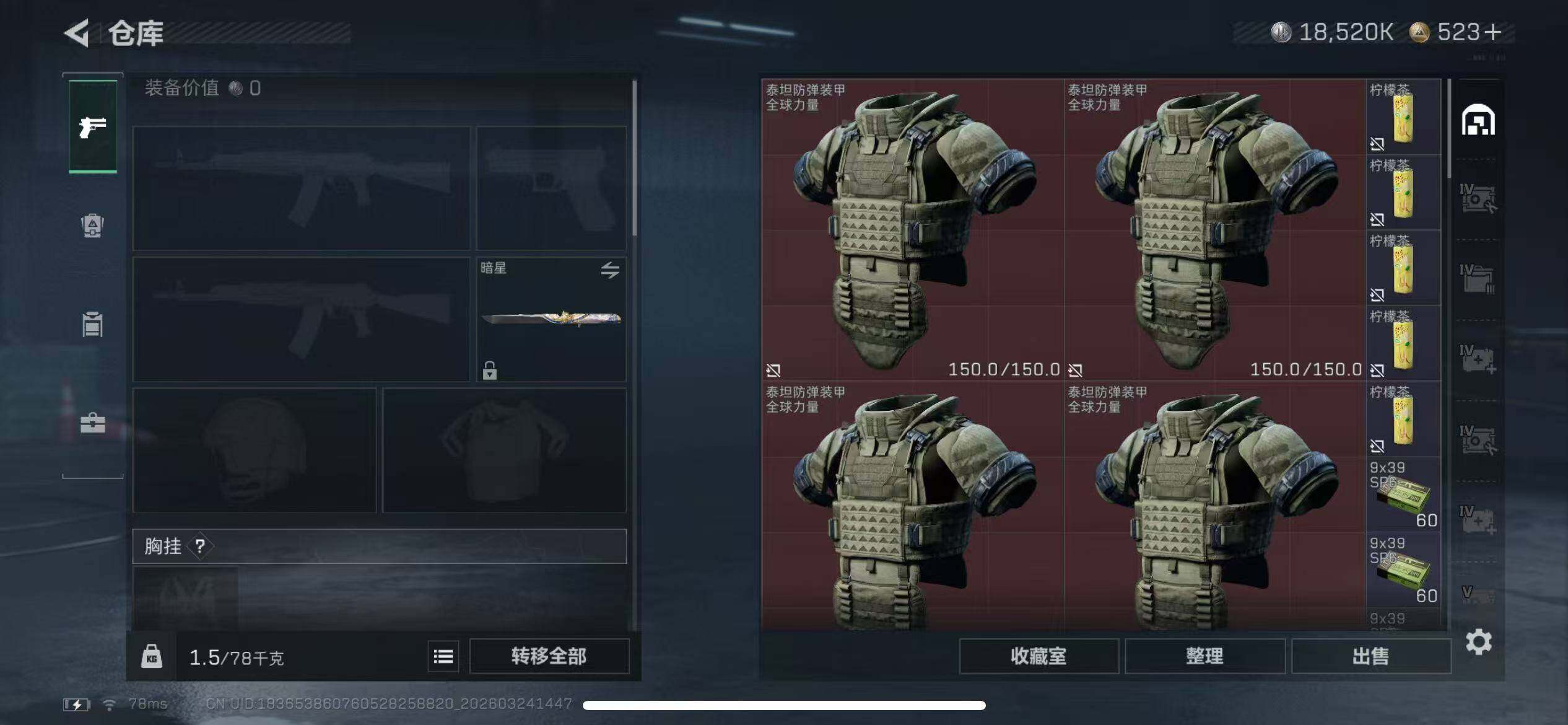 198m总资产-18520k哈夫币-60烽火等级-铂金-8战场等级-列兵