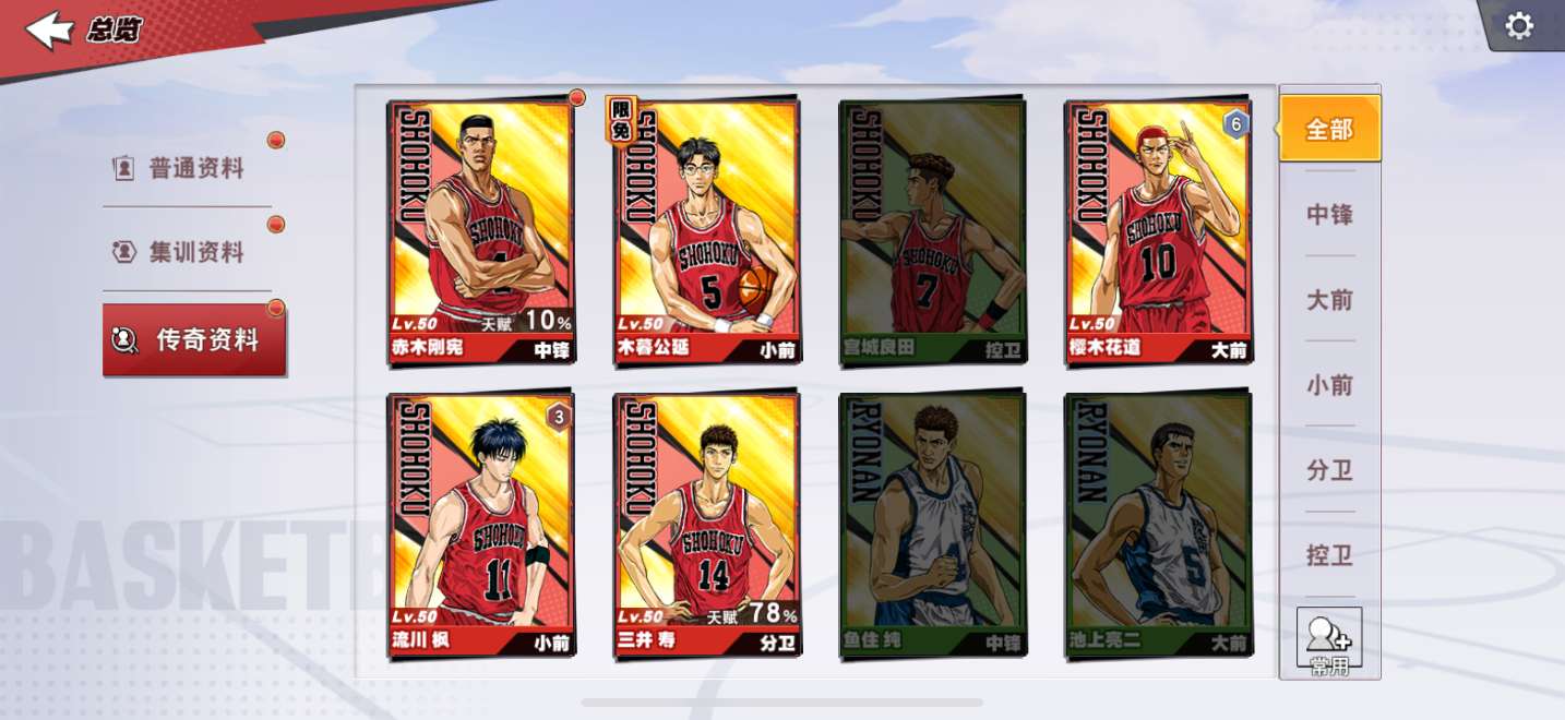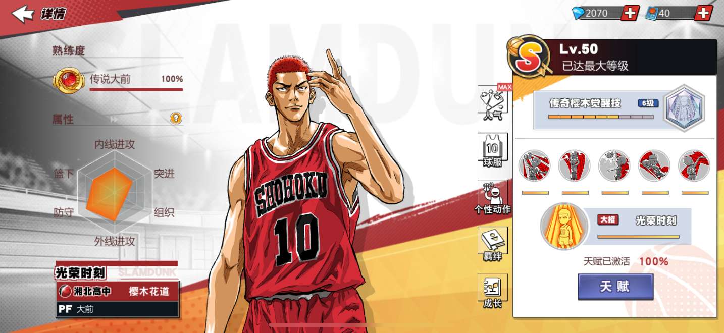 传奇樱木,传奇流川枫天赋满,传奇三井天赋77上场无压力,七满荣耀,球员天赋全满,球员觉醒大部分九觉,