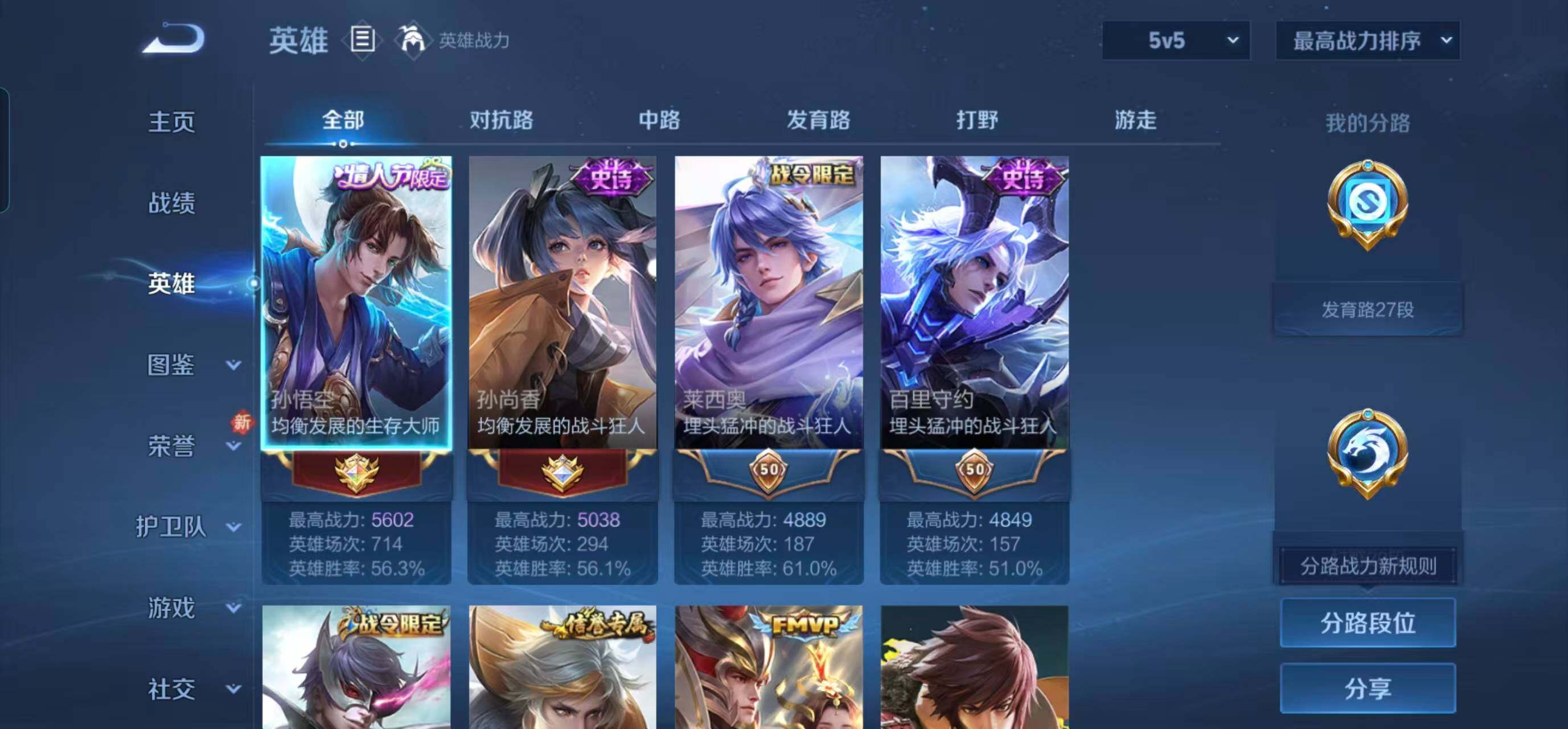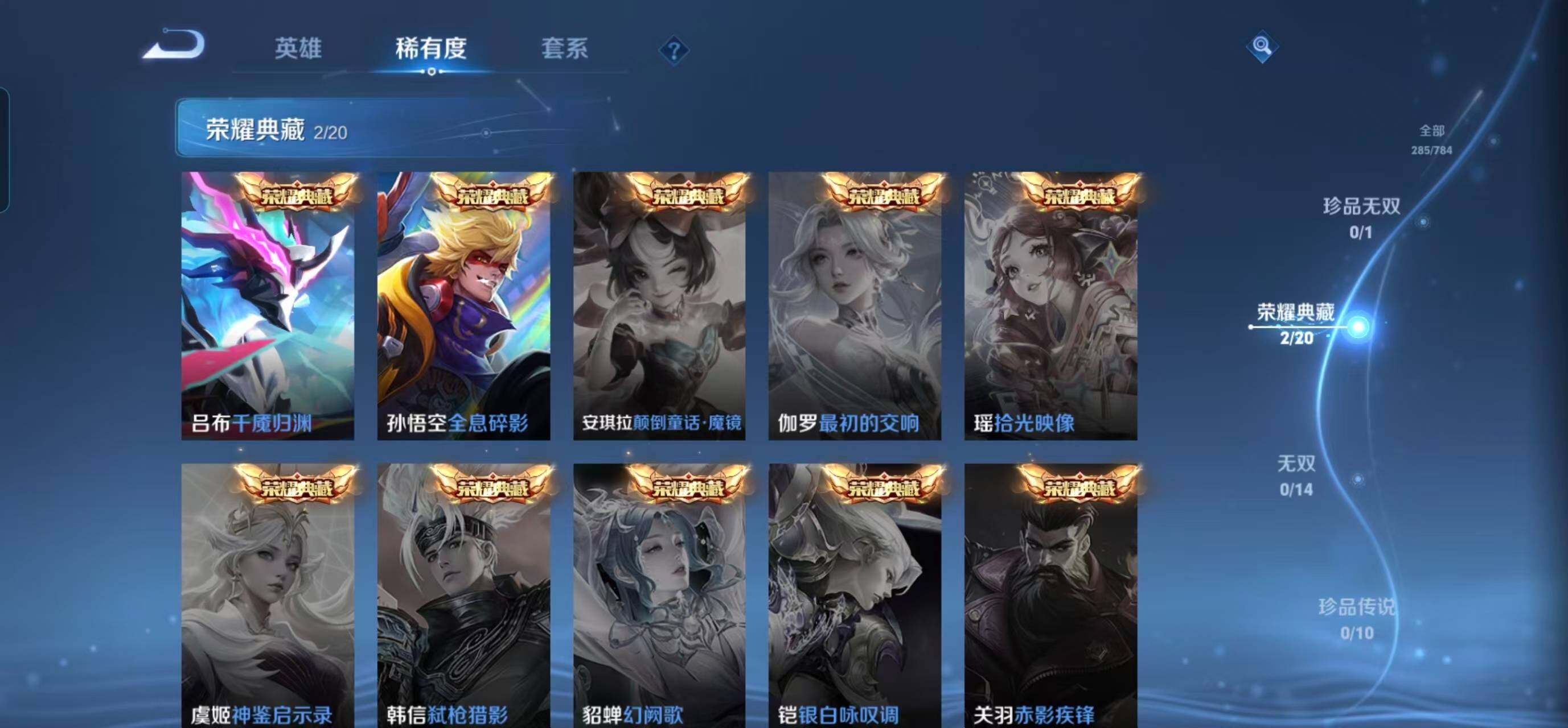 安卓Q-V8-最强王者段位-128英雄-285皮肤-2典藏皮肤-14传说-83史诗