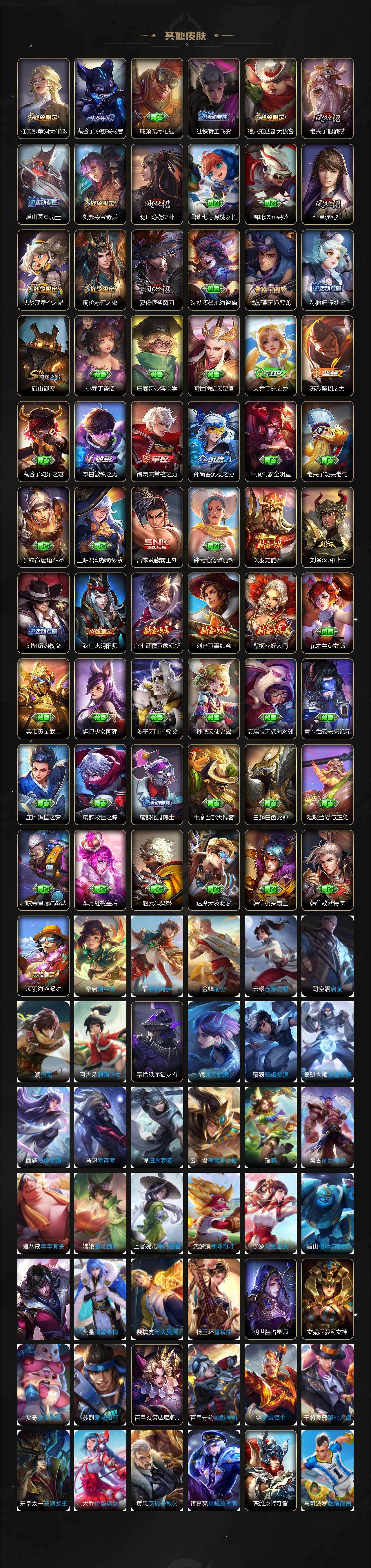 【限定皮肤】:姜子牙天穹之誓,狄仁杰阴阳师,赵云皇家上将,墨子神迹守卫,孙尚香蔷薇恋人,庄周高山流水,高渐离玩