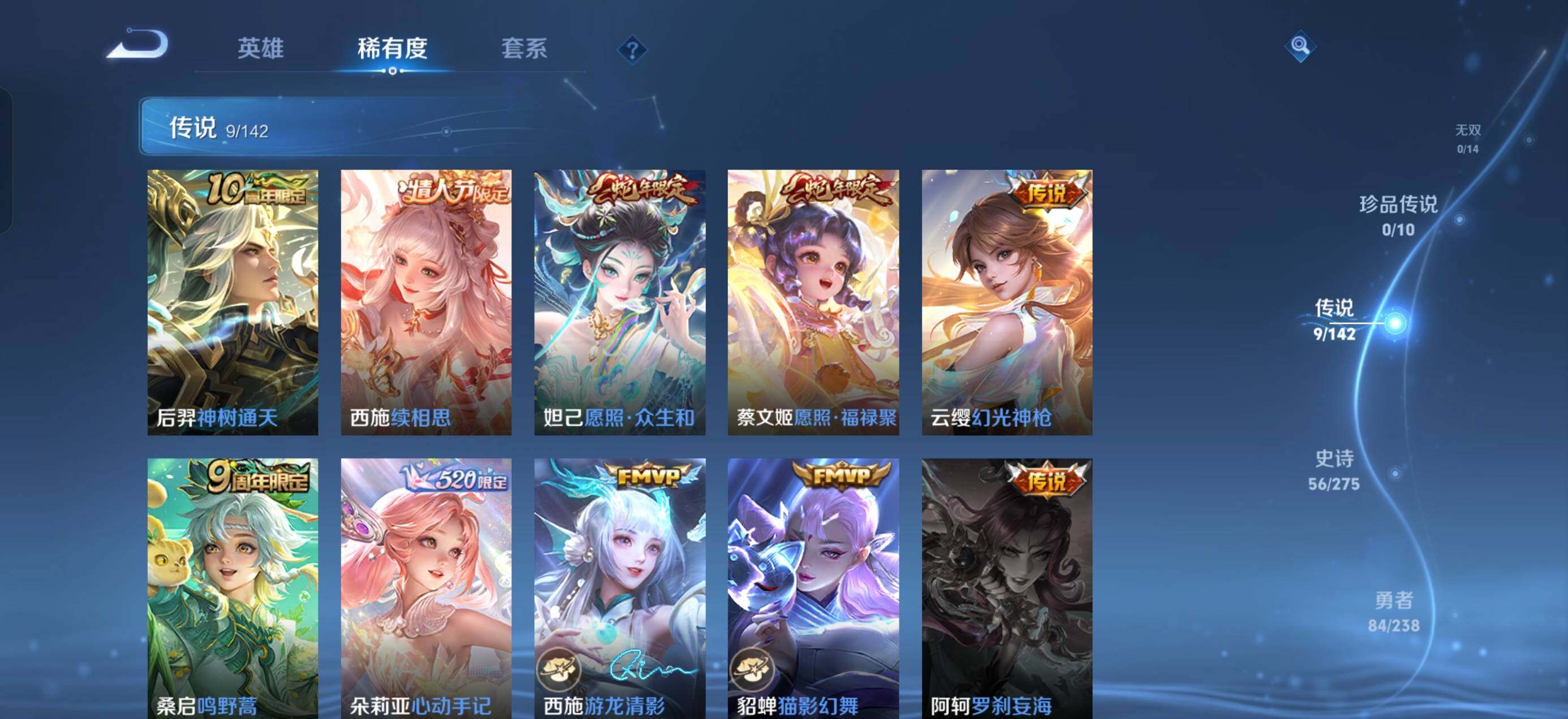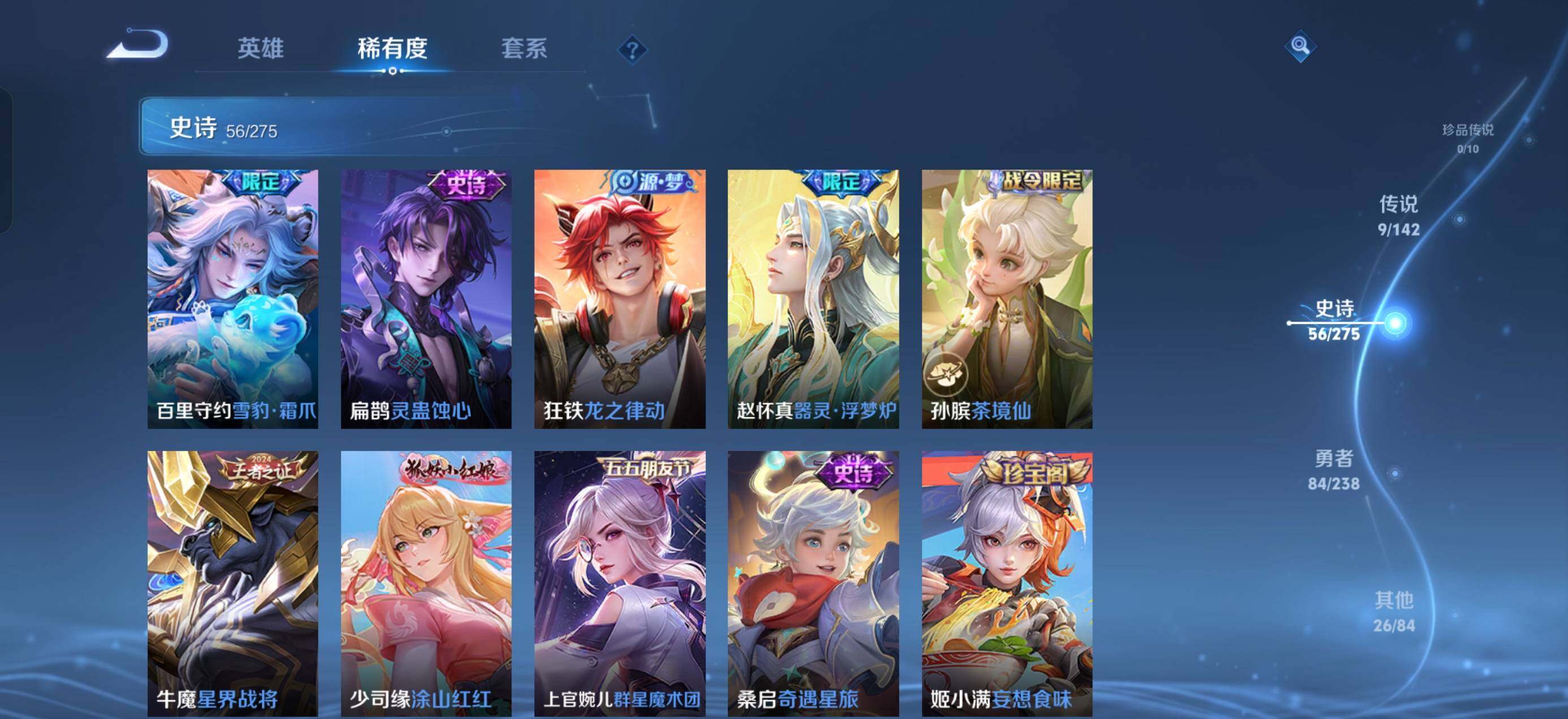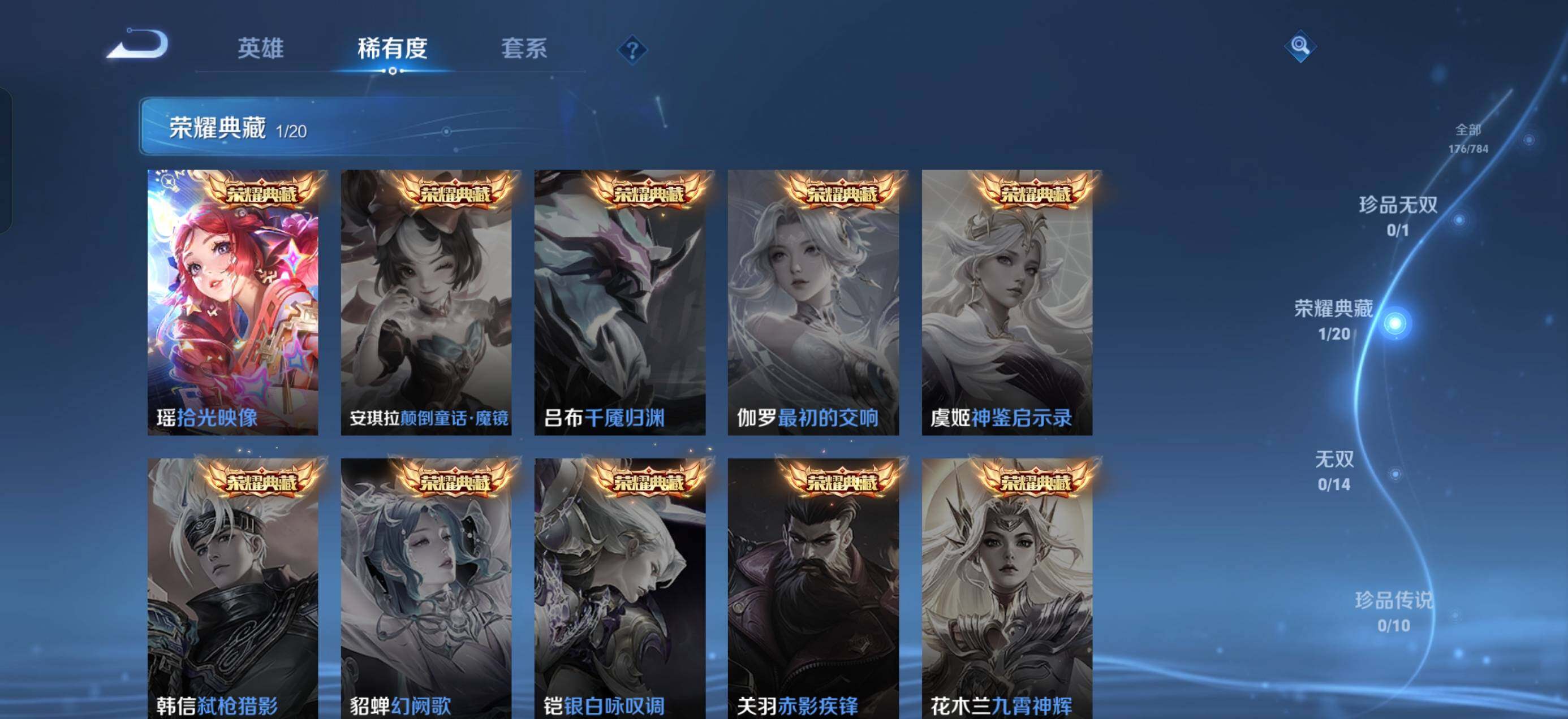 安卓Q-V7-永恒钻石II段位-124英雄-176皮肤-1典藏皮肤-9传说-55史诗