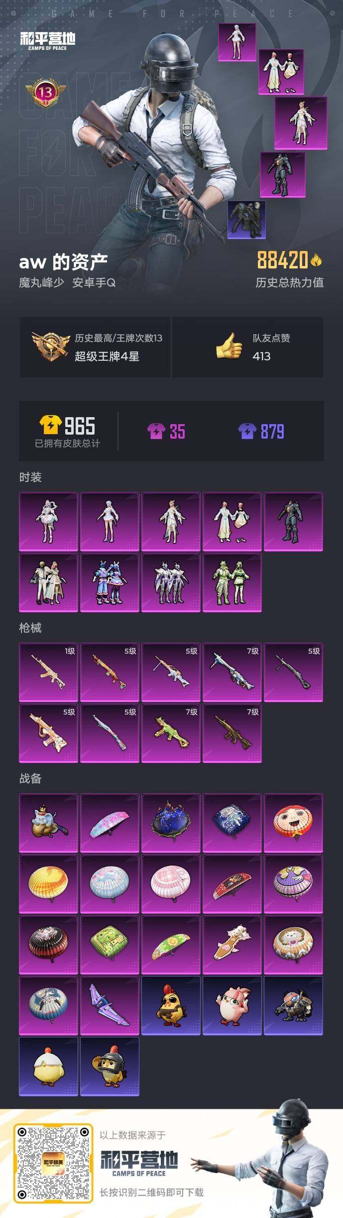 安卓 手Q-9粉装-9特效枪-0载具-3粉色飞行器-88420热力值-13王牌印记-194套装-277枪皮