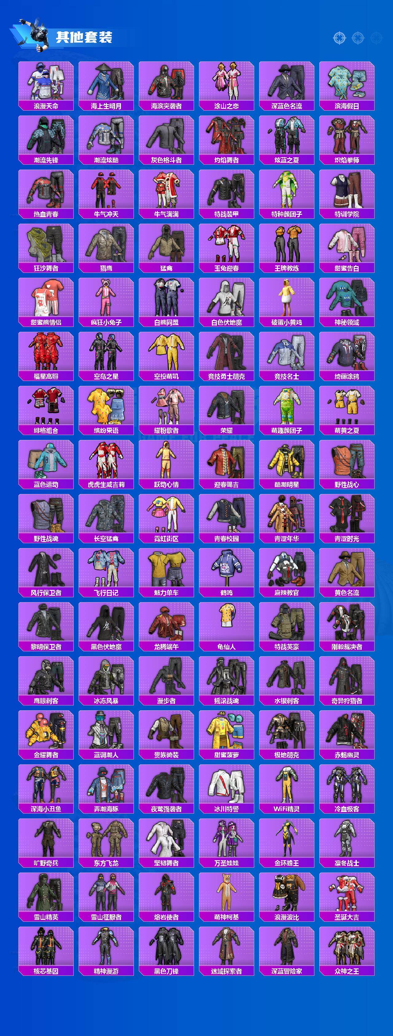 【热门品类】:粉装-梦幻火箭,绝对防御上衣,套装-浪漫天命,套装-赤蝎幽灵,套装-都市猎人,套装-派对舞王,套装-深海小丑鱼,套装-小丑鱼,套装-奇异狩猎者,套装-忍者信条,套装-龟仙人,套装-暗影哥特,套装-浪漫波比,角色-Mark.06