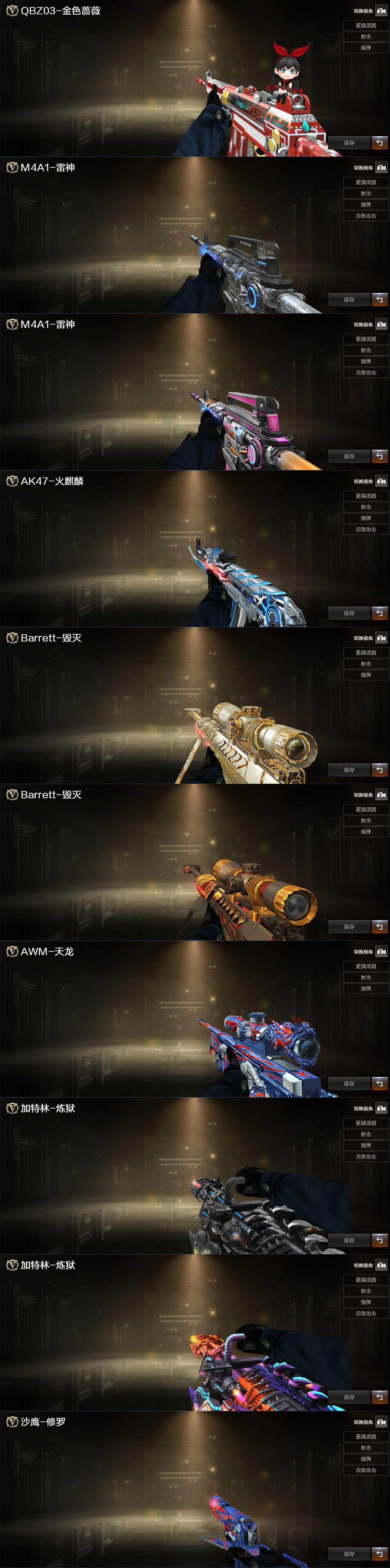 【热门武器】:QBZ03-金色蔷薇,M200-竞技荣光,汤姆逊-烈龙*6,加特林-炼狱*3,沙鹰-修罗*2