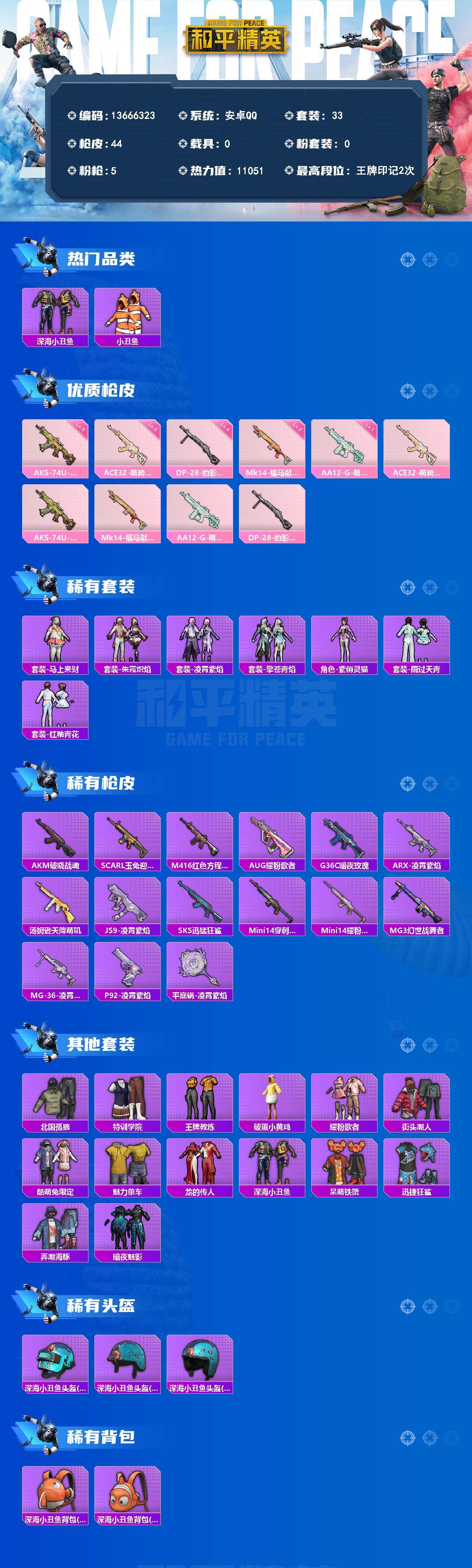 33套装/枪械5/装备42/战备31/王牌印记2/热力值11051/五级ACE