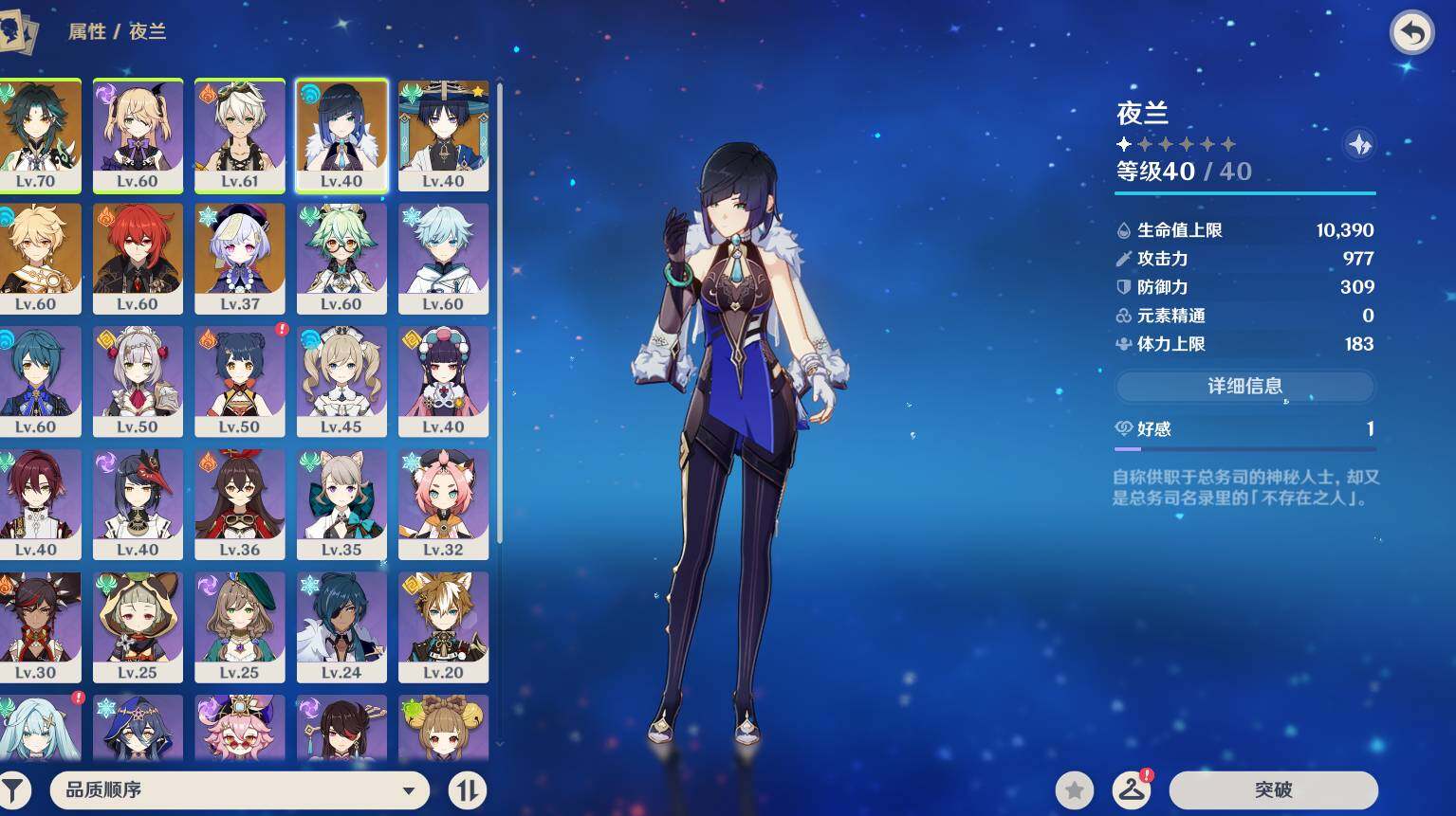44级/女主/6个五星角色/流浪者/夜兰/魈/1命迪卢克/七七/