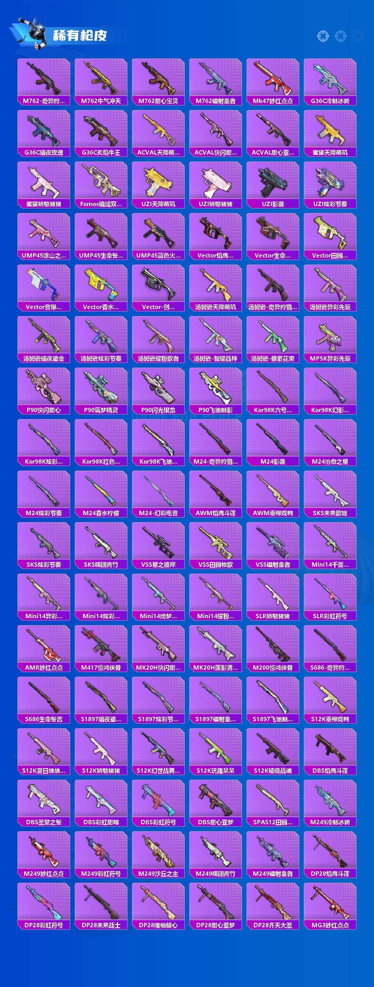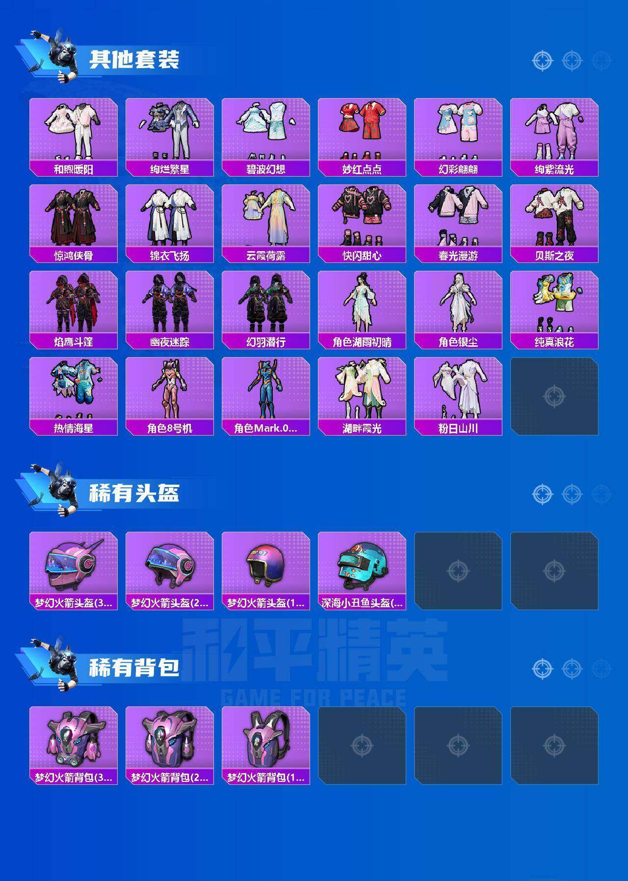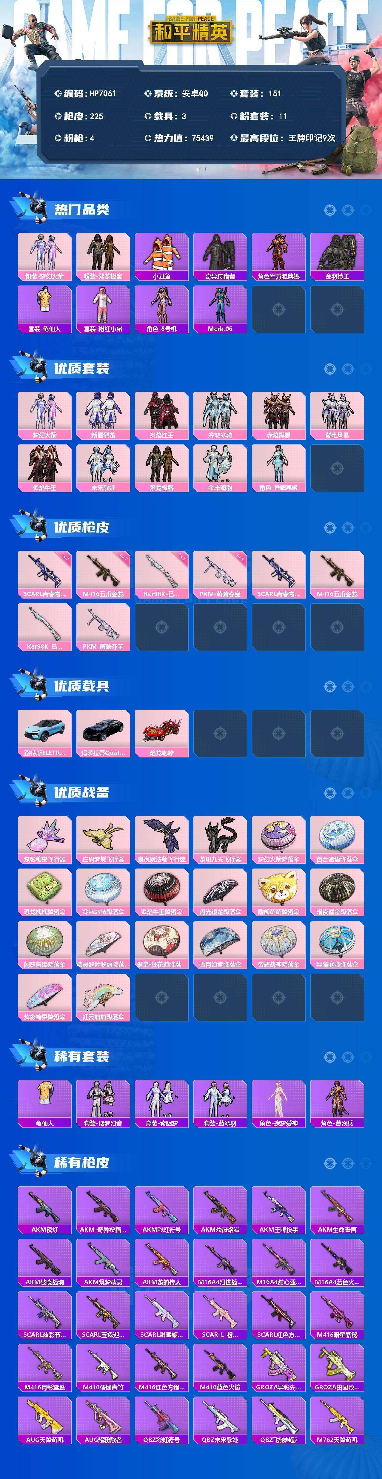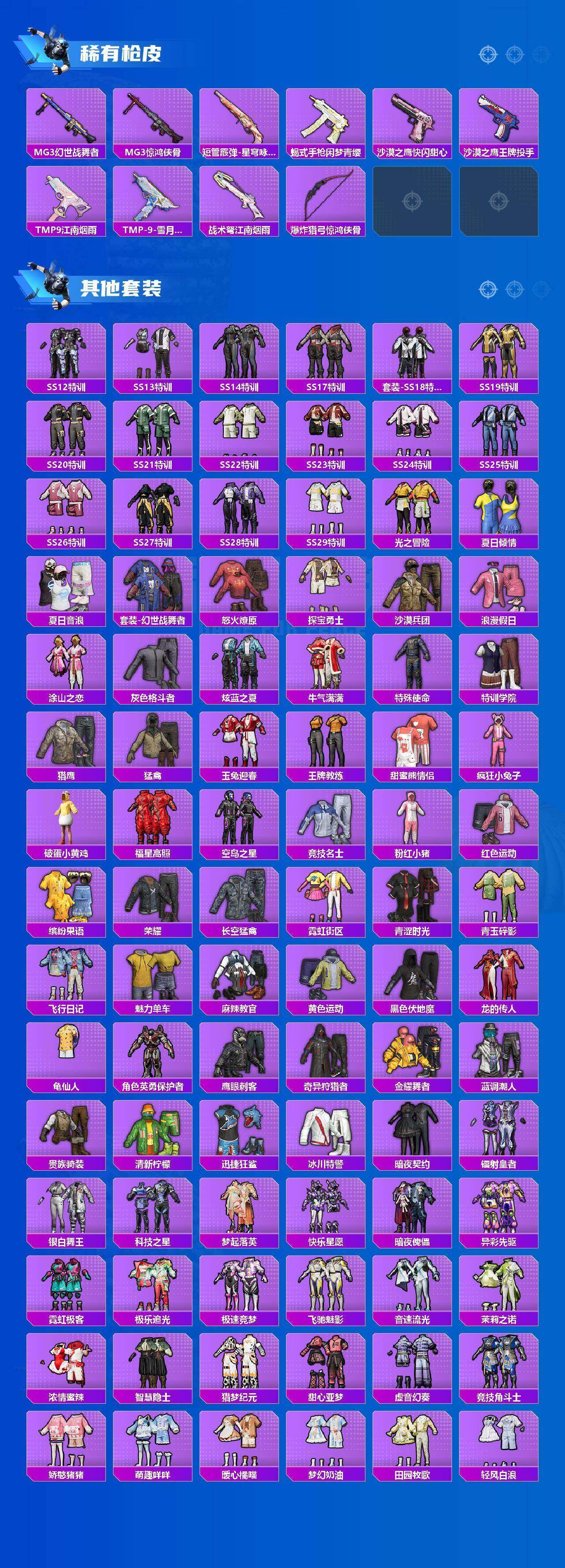 (11粉套4粉枪3载具)梦幻火箭/新星烈龙/炙焰红王/冷魅冰骑/赤焰黑爵/紫电风暴/炙焰牛王/未来歌姬/繁龙极客/金丰海韵/异瞳寒姬/SCARL青春物语七级/M416五爪金龙七级/Kar98K巳巳如意五级/PKM萌骑夺宝四级/路特斯冰川蓝/玛莎拉蒂夜幕蓝/焰龙咆哮/没战神框/HP7061-4粉色飞行器-75439热力值-9王牌印记-151套装-225枪皮