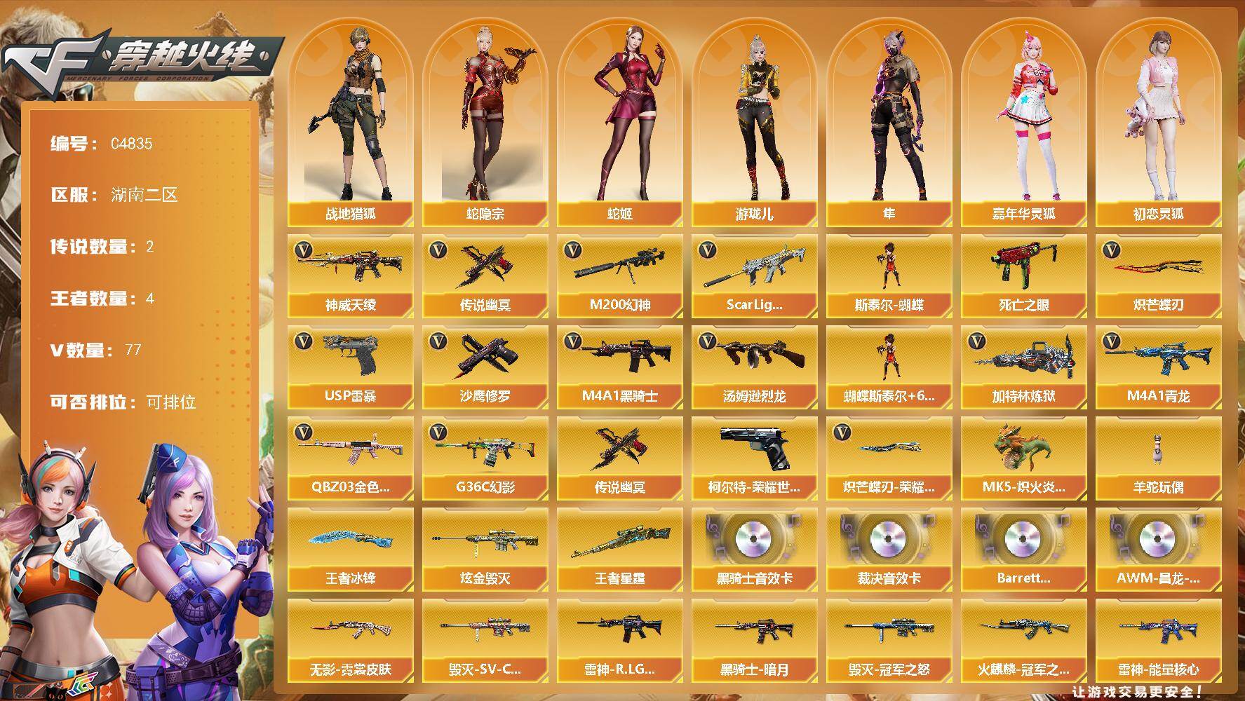 湖北一区-129V-21王者武器数-2炫金武器数