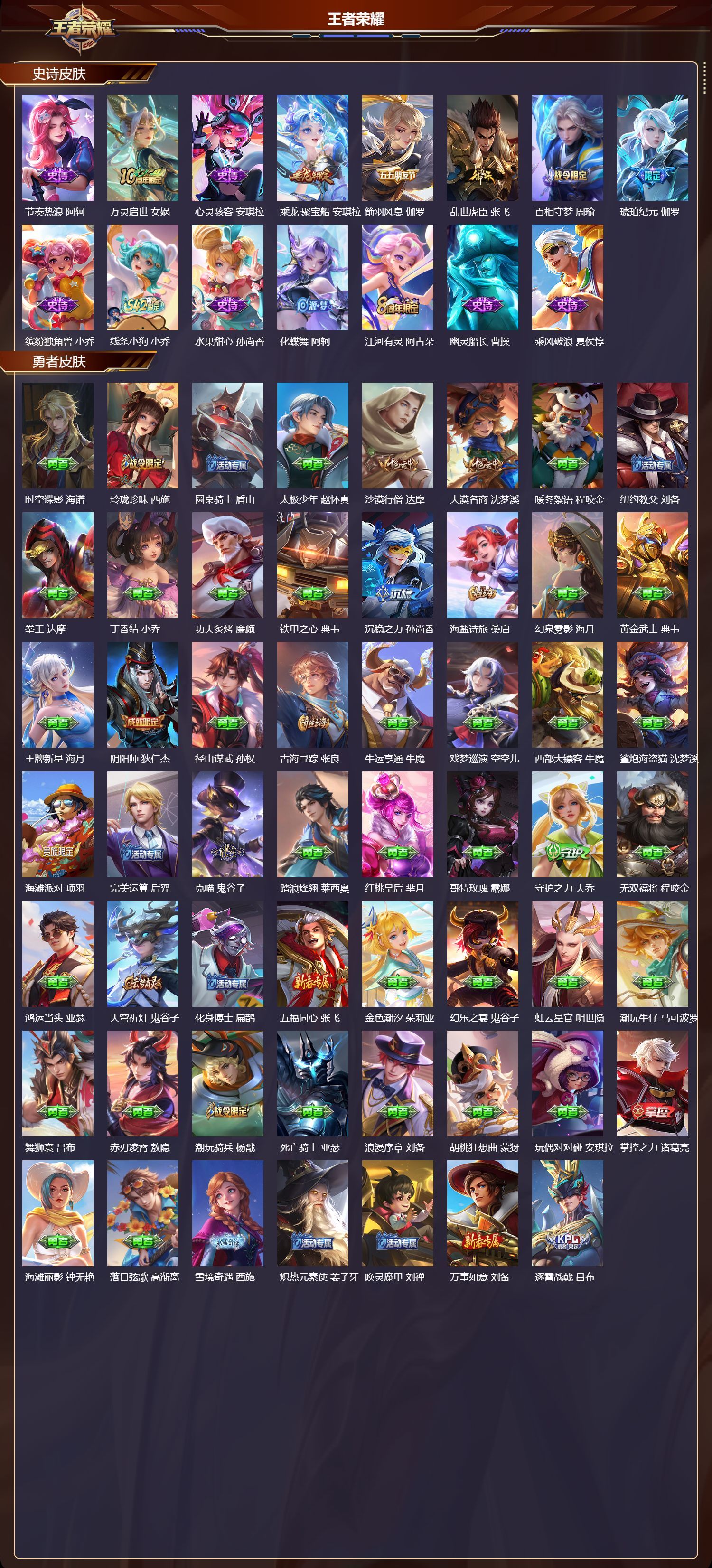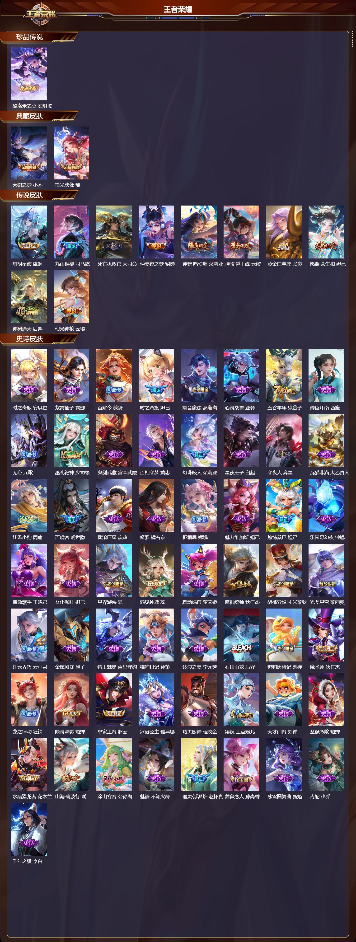 安卓QQ/传奇王者/256皮肤/127英雄/2典藏/0珍品无双/0无双/1珍品传说/10传说/72史