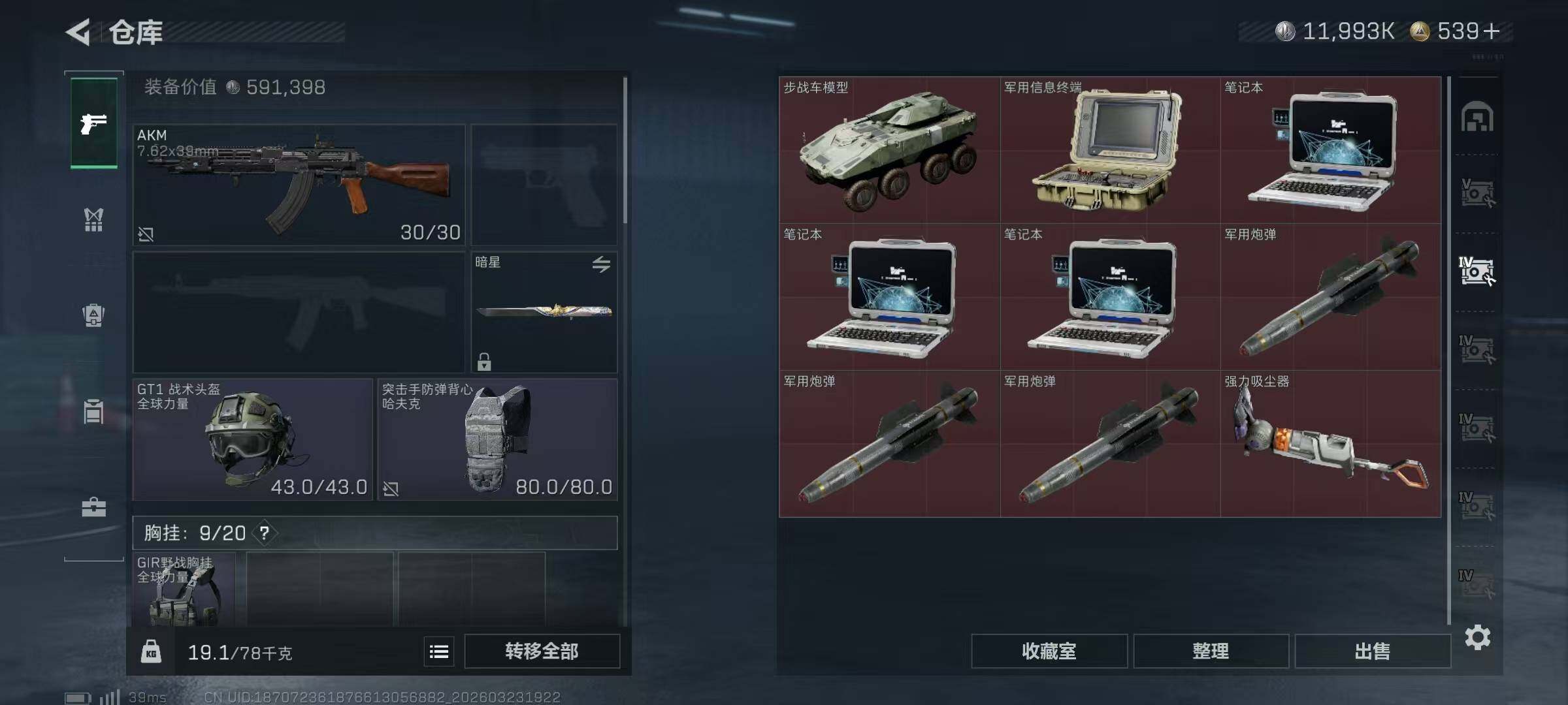 327m总资产-11993k哈夫币-60烽火等级-黄金-3战场等级-无军衔【