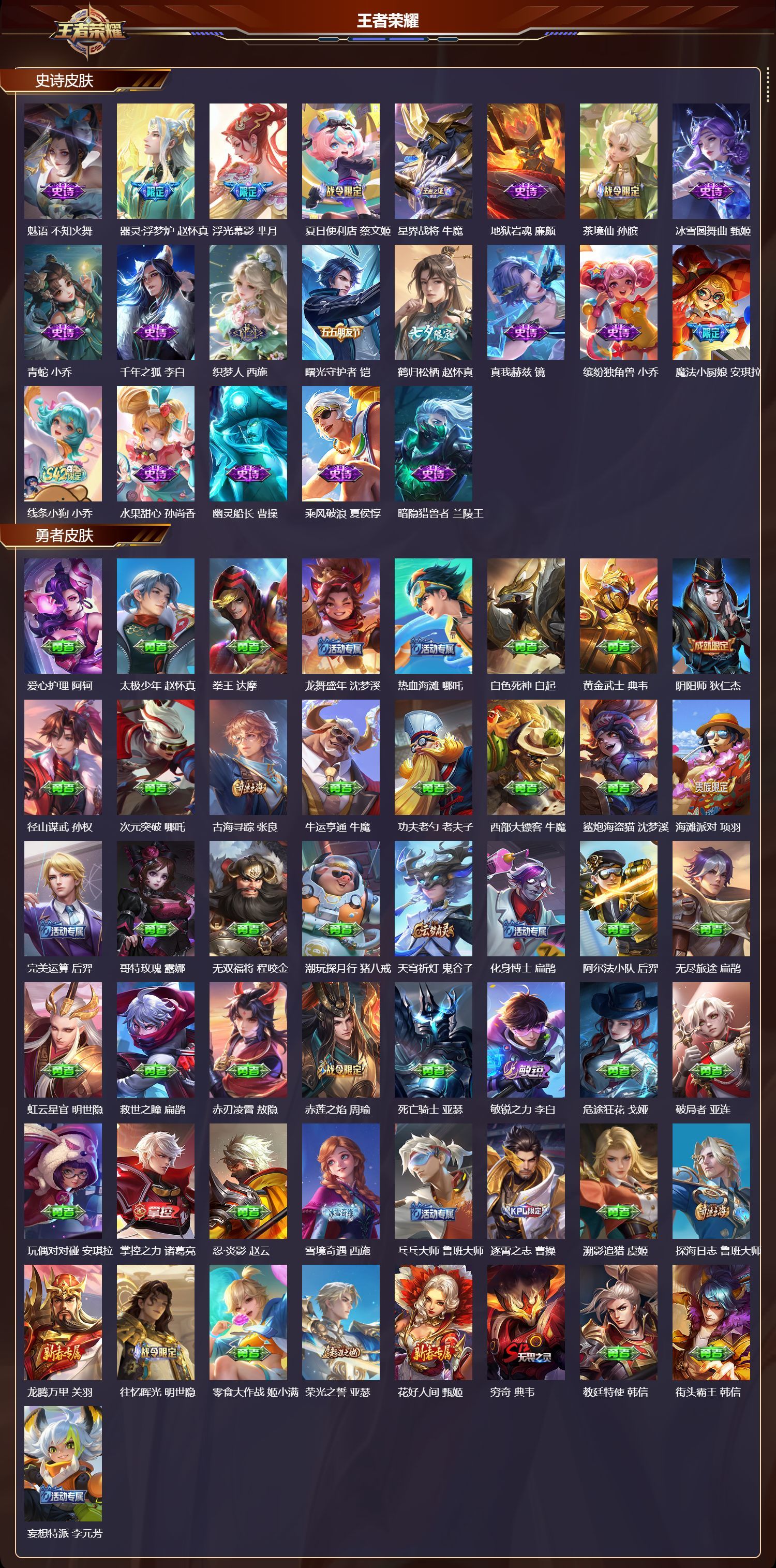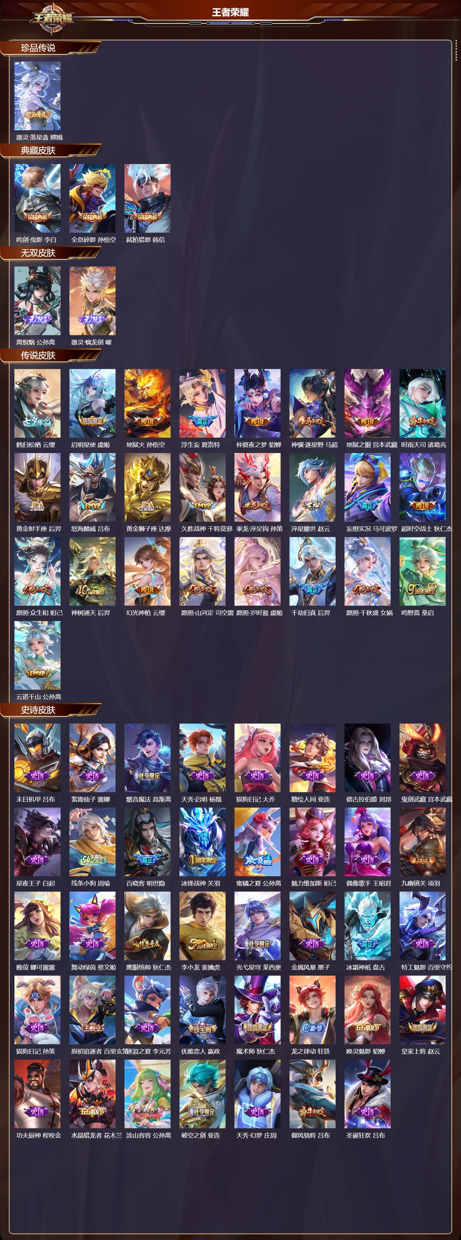 苹果QQ/至圣王者/194皮肤/127英雄/3典藏/0珍品无双/2无双/1珍品传说/25传说/60史