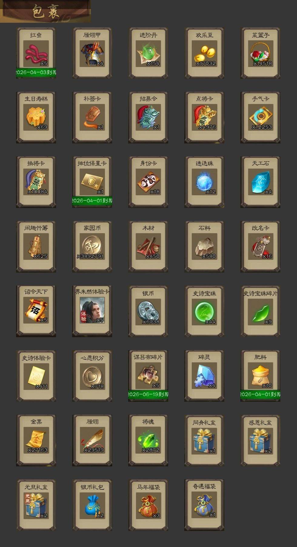 官阶:大将军;VIP等级:VIP10;史诗武将数量:55;动态皮肤数量:48;武将总数:348;史诗宝珠数量:44;将魂数量:2872;神将:7;魏国史诗武将:36;蜀国史诗武将:12;吴国史诗武将:8;群史诗武将:18