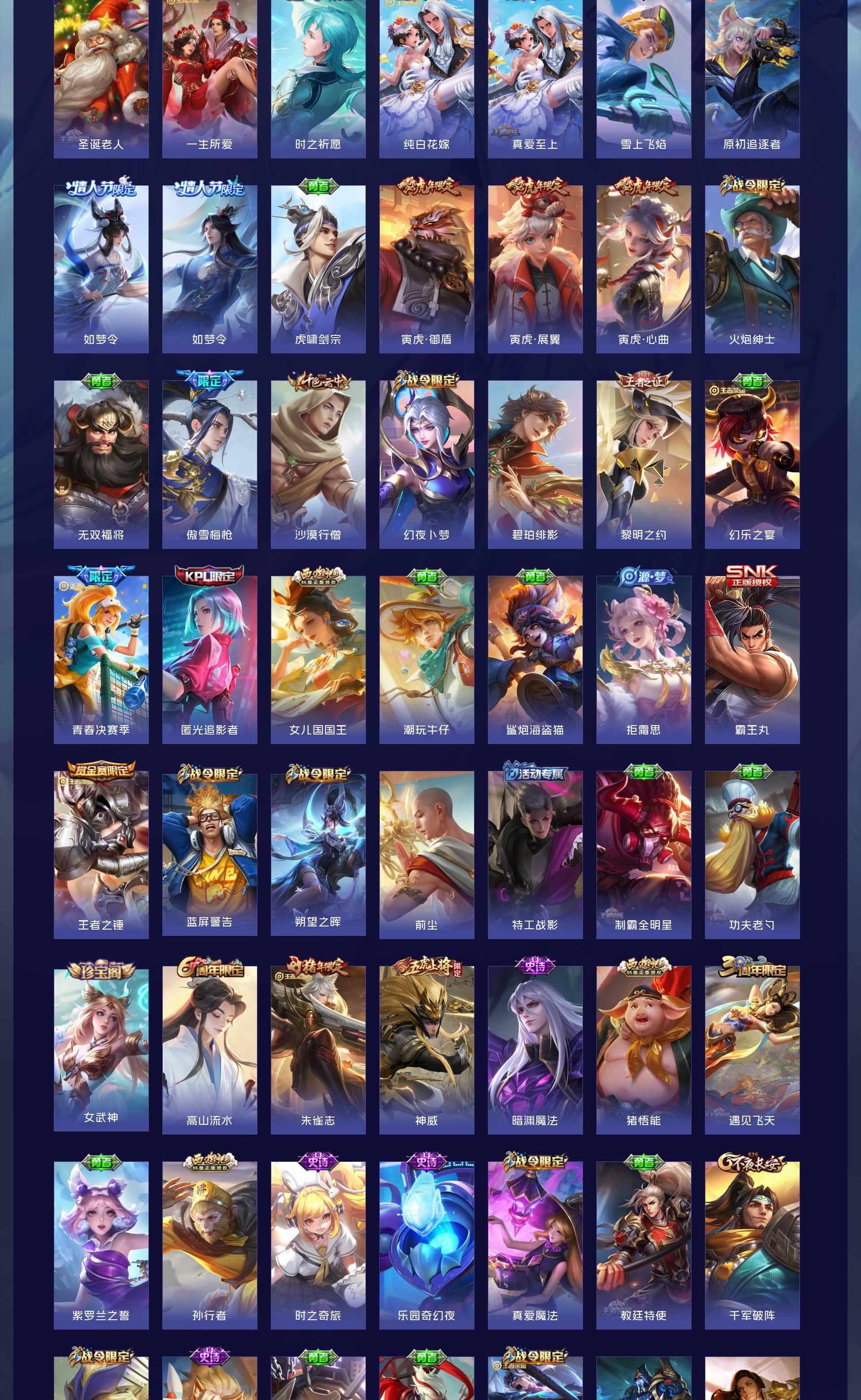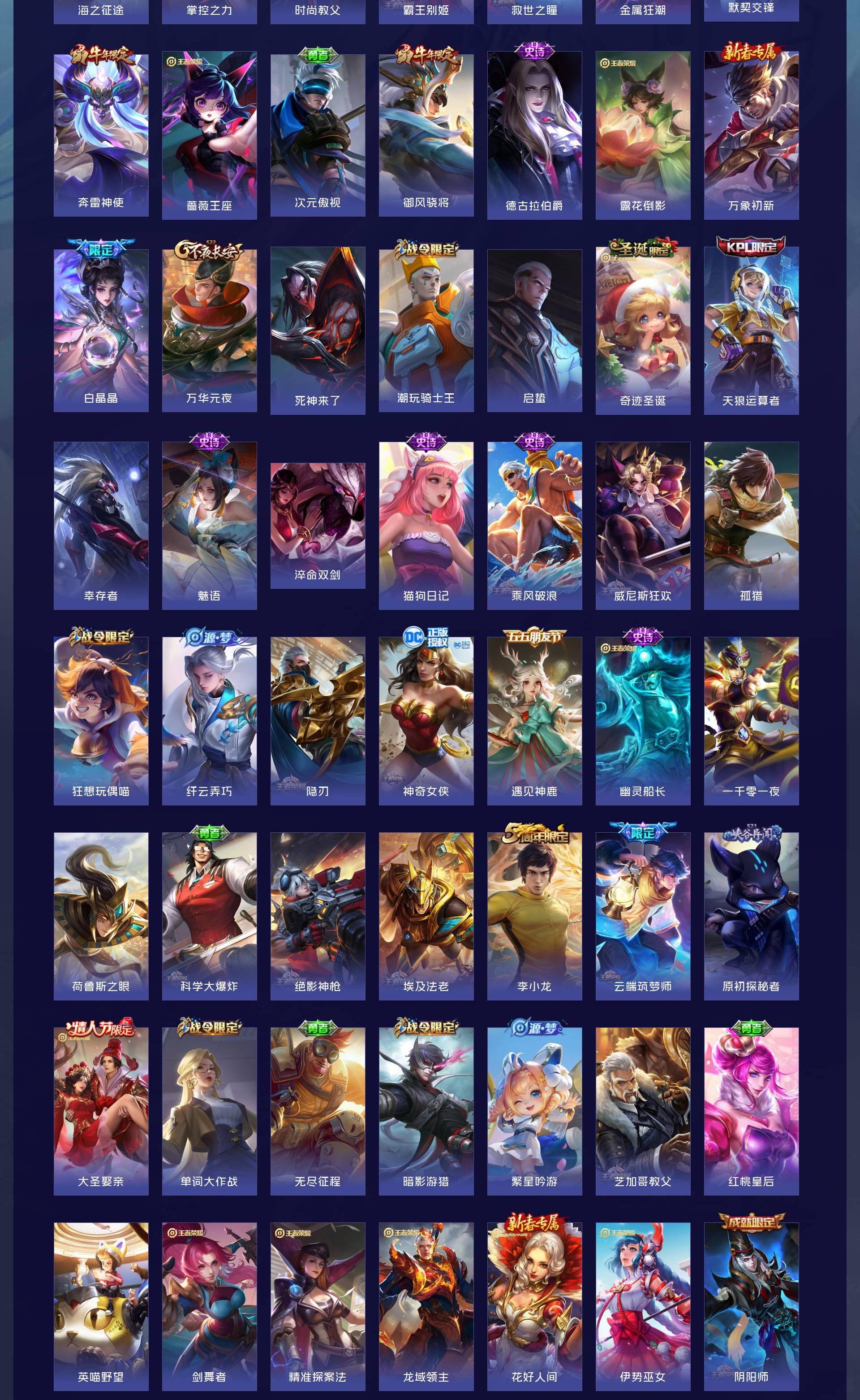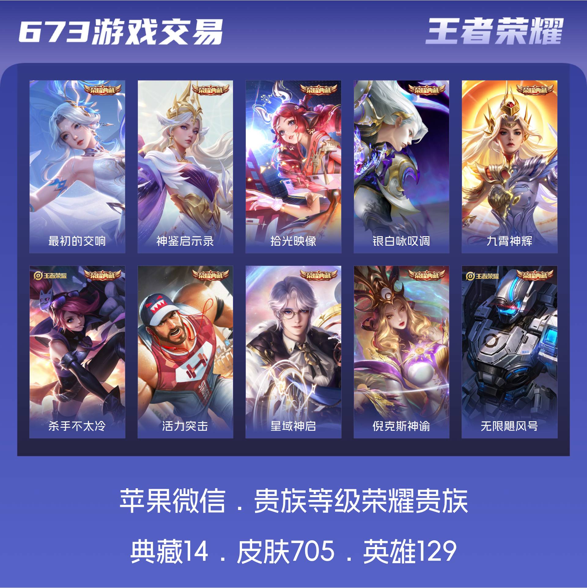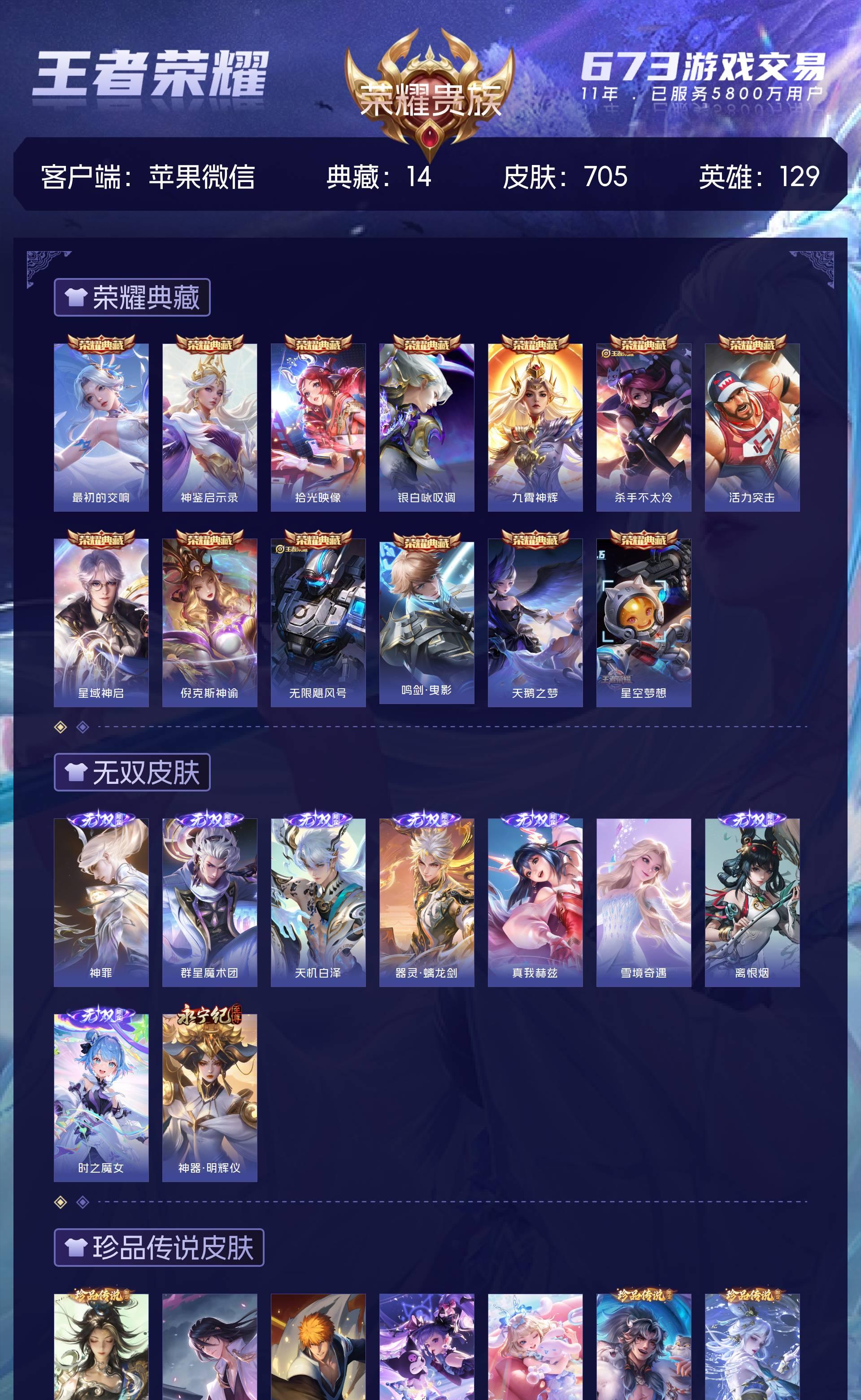 荣耀贵族 皮肤705 英雄129 至尊星耀 荣耀典藏14 无双皮肤9 珍品传说10 传说118