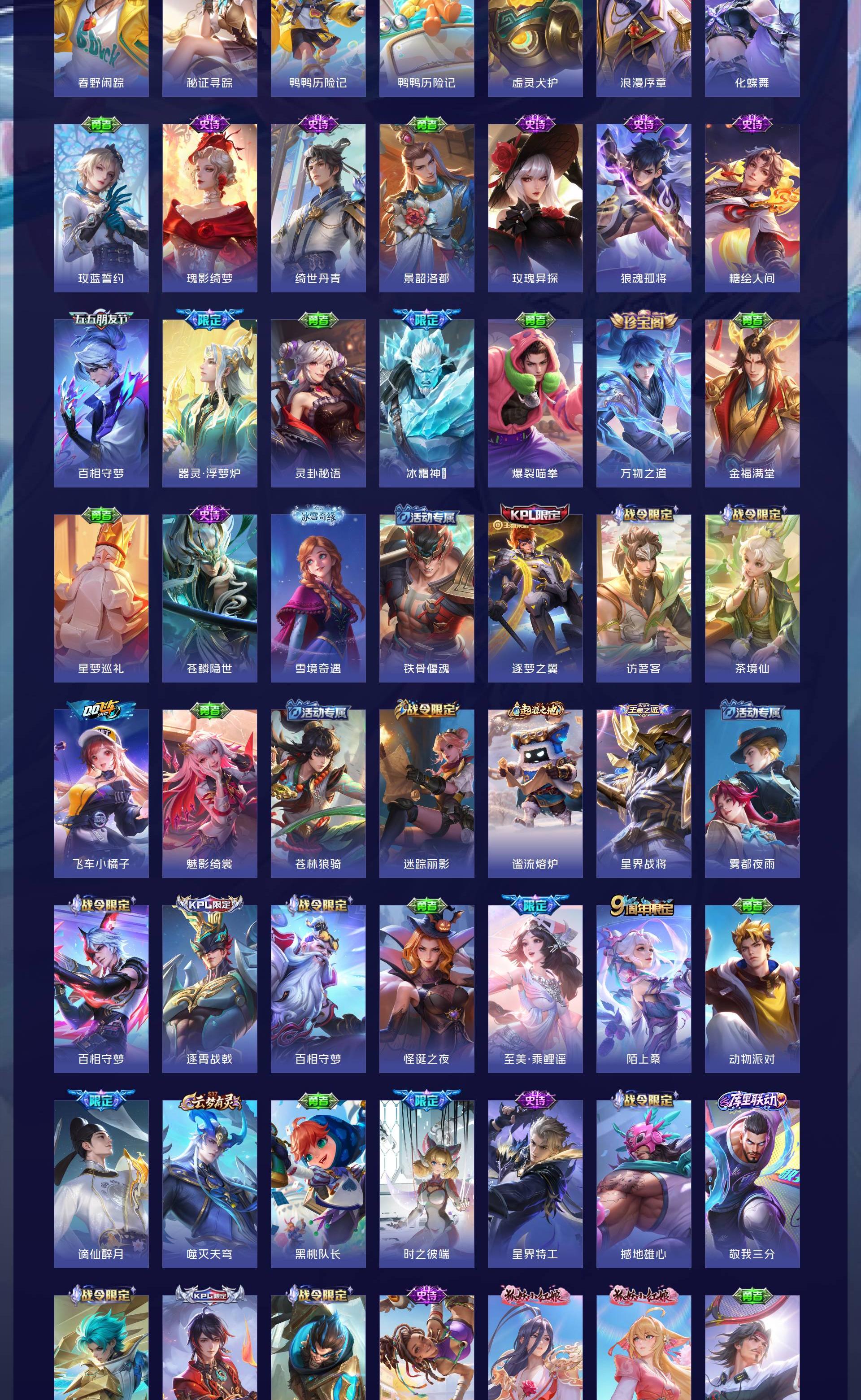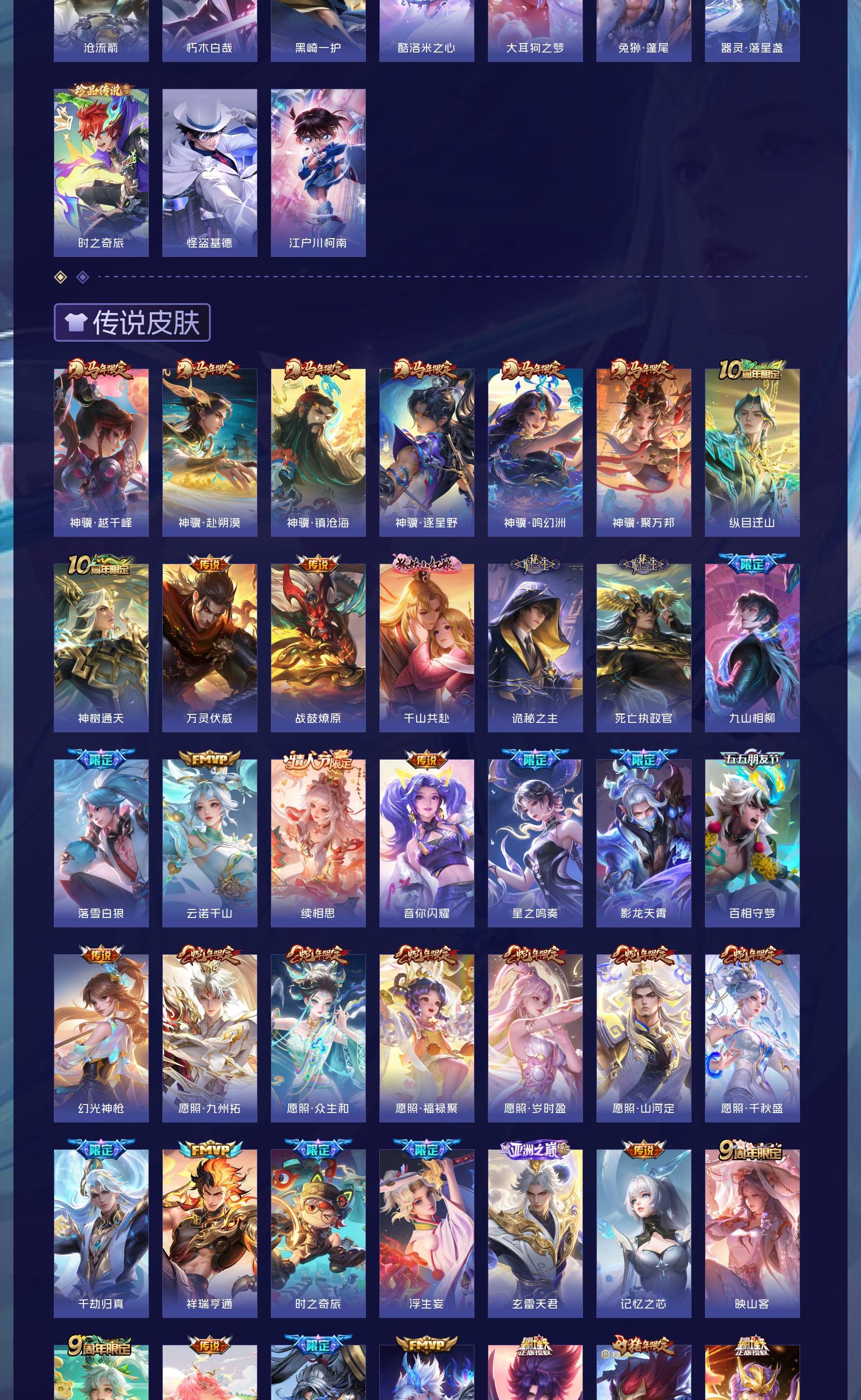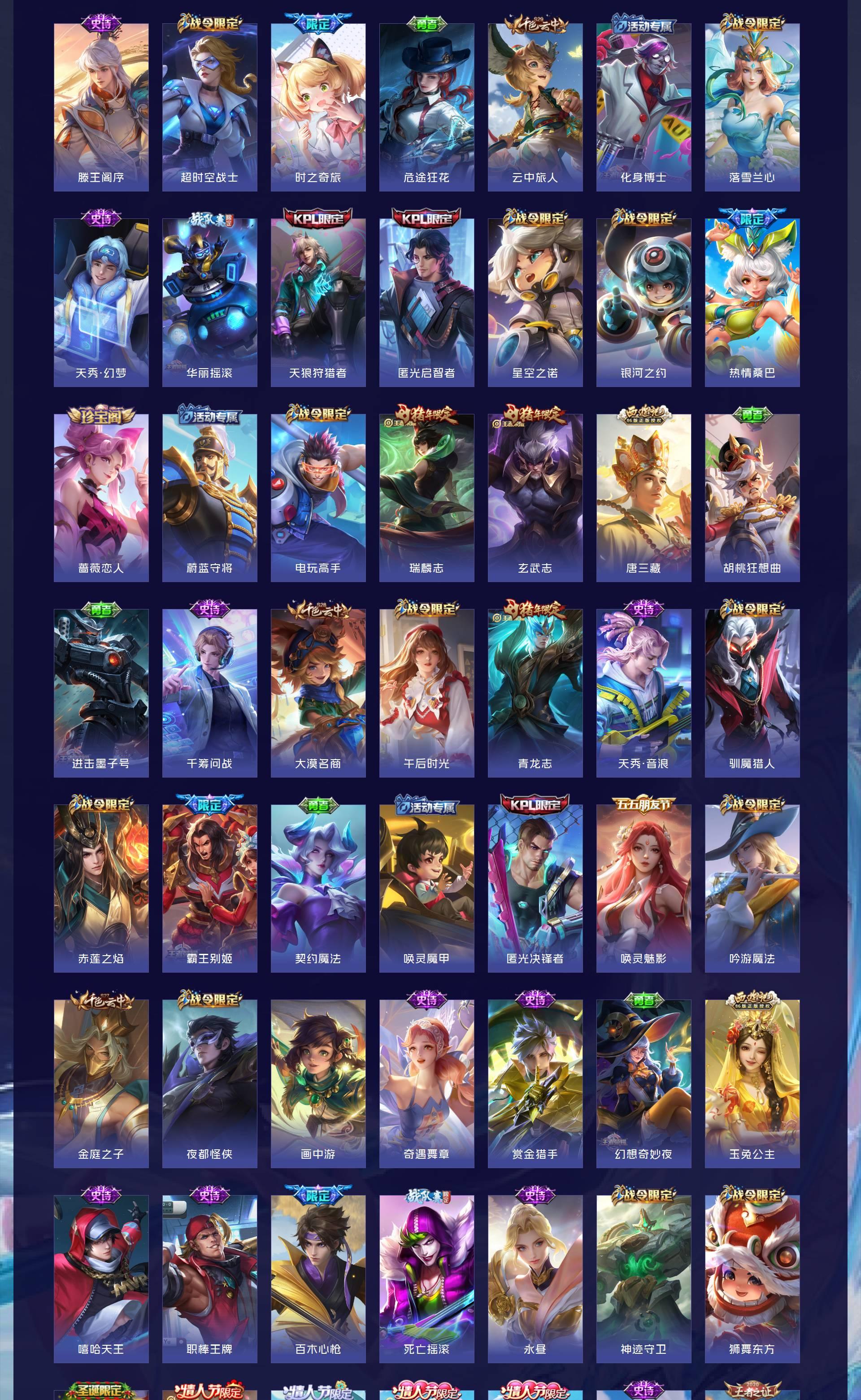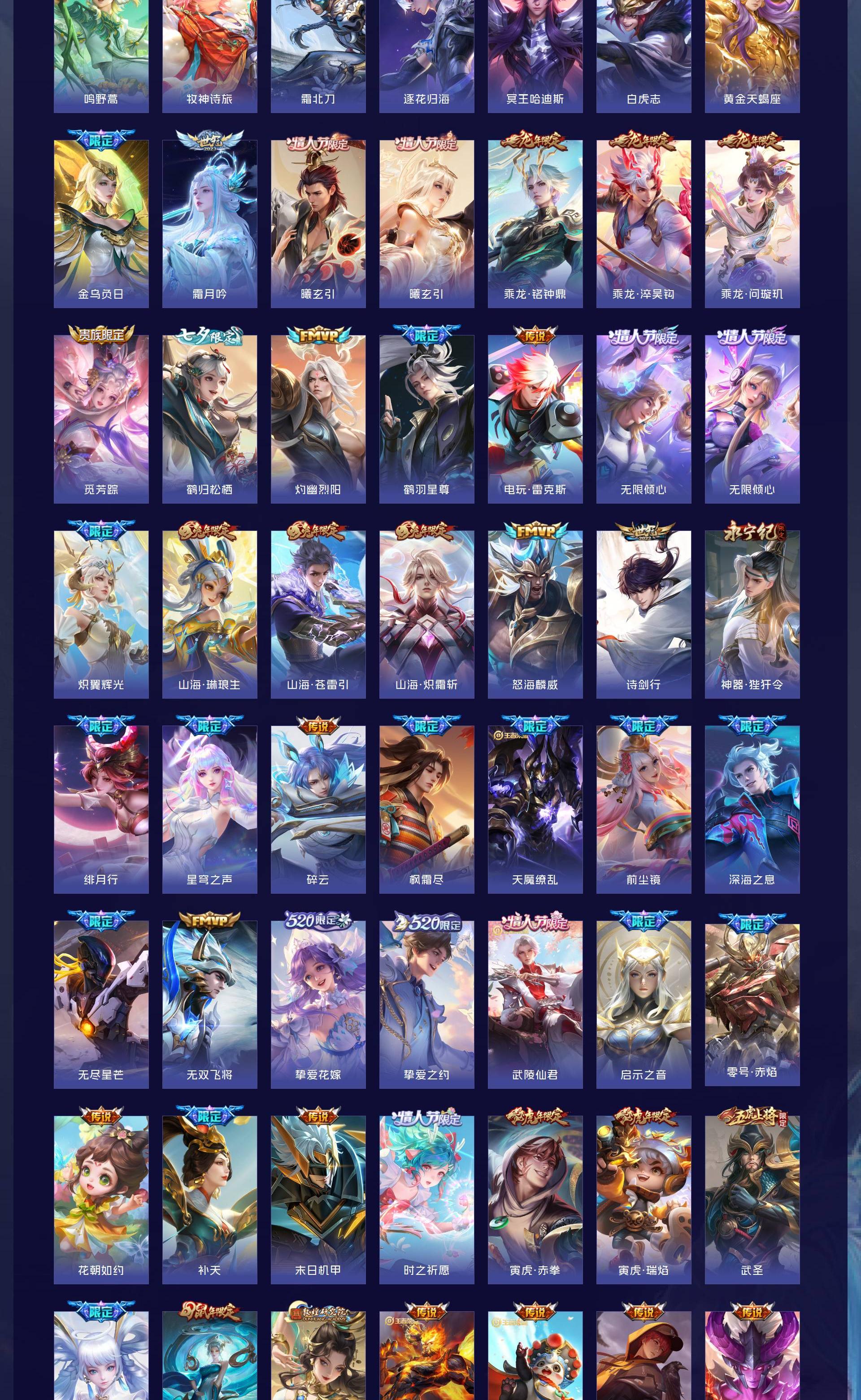 荣耀贵族 皮肤705 英雄129 至尊星耀 荣耀典藏14 无双皮肤9 珍品传说10 传说118