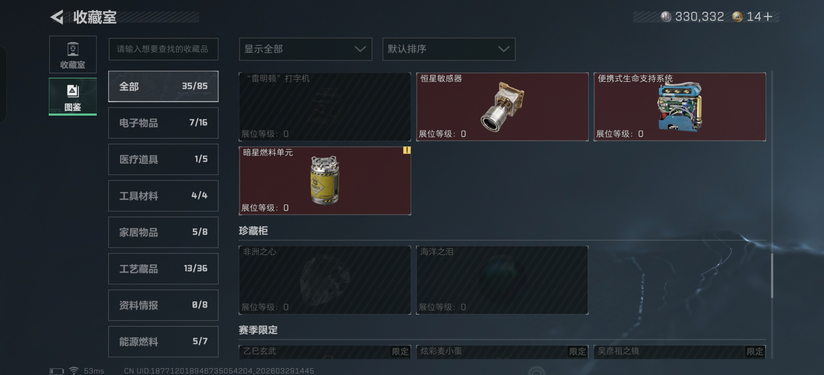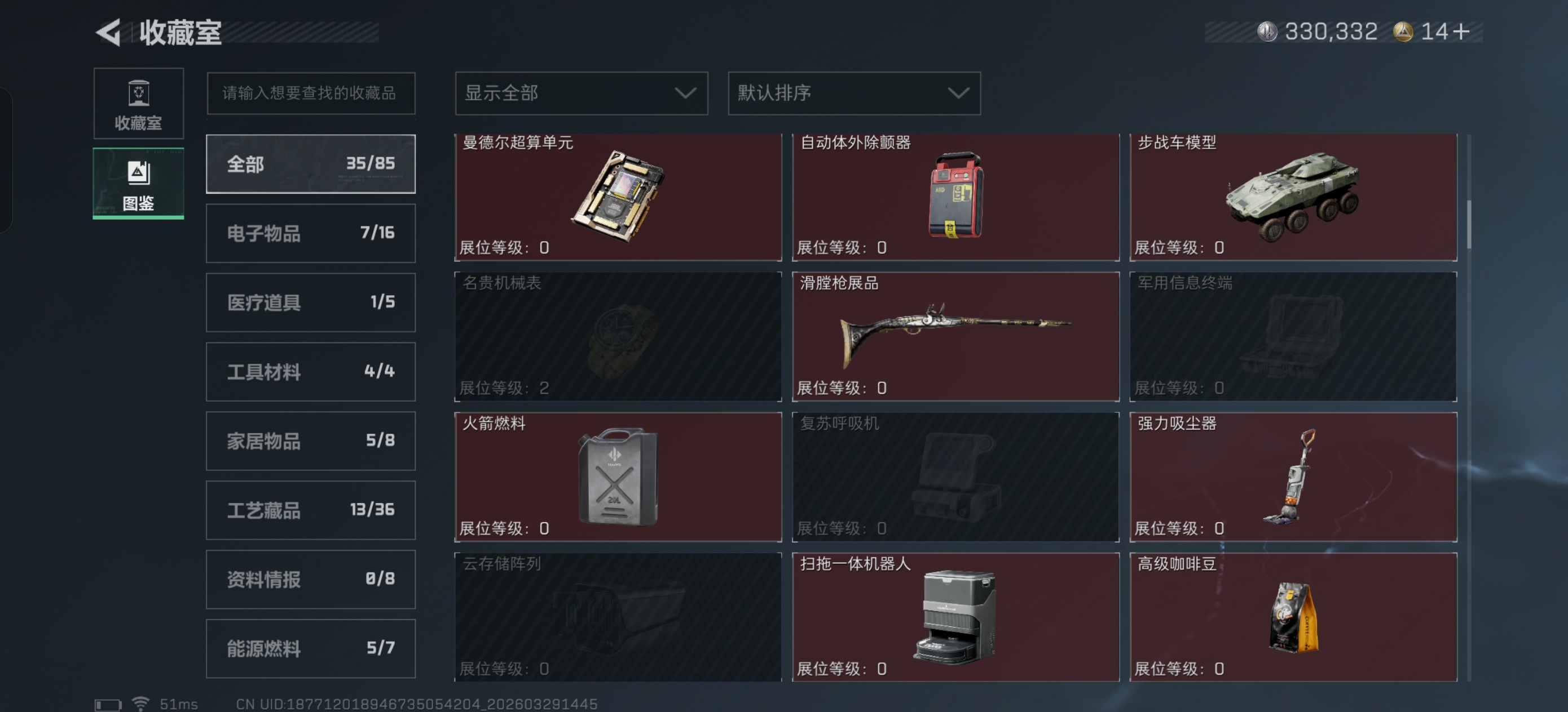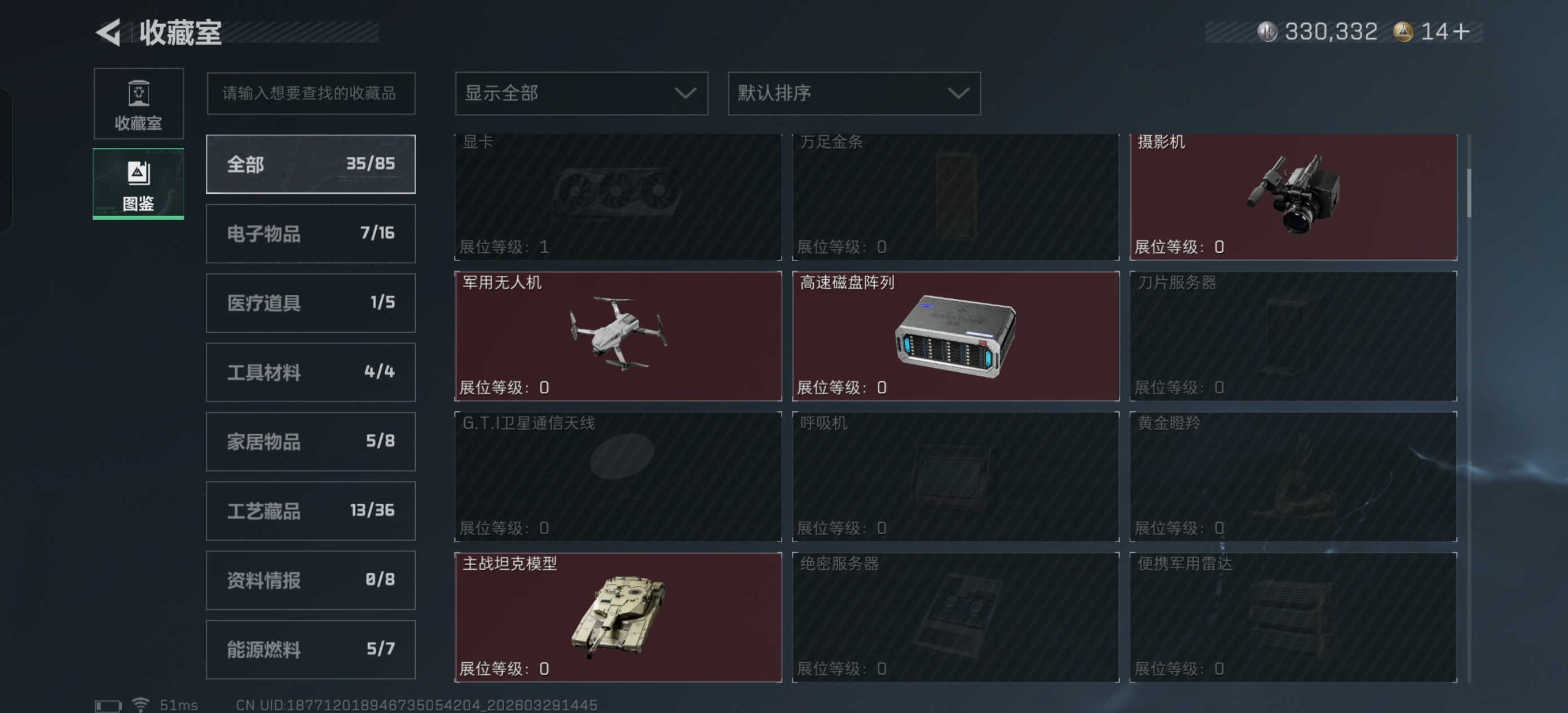 烽火段位黑鹰1 战场段位暂无段位 总资产153.2M 哈夫币33W 干员3 挂饰18 近战2 枪械152 载具26