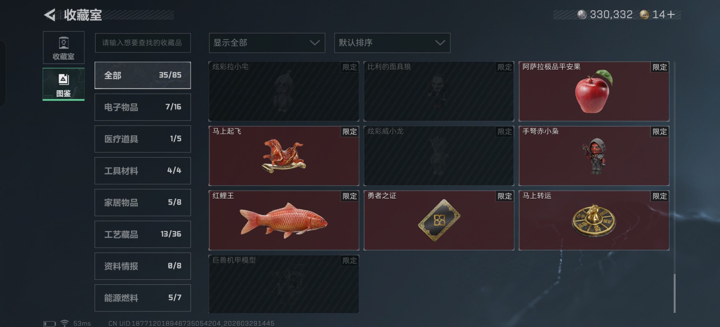 满靶满体,九级仓库,刀皮有暗星,勇敢者也做了,仓库有六级,收藏室有一堆大红和非洲之心,可小刀,诚心卖